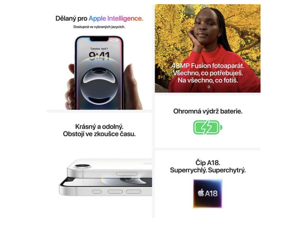 iPhone 16e je navržený pro Apple Intelligence, systém osobní inteligence, který pomáhá psát, vyjadřovat se a být produktivní bez větší námahy. Vytvoř si vlastní emotikony, při úpravách fotky využij nástroj Vyčistit a další. A převratná ochrana soukromí hlídá, že se k tvým datům nedostane nikdo jiný než ty. Ani Apple.