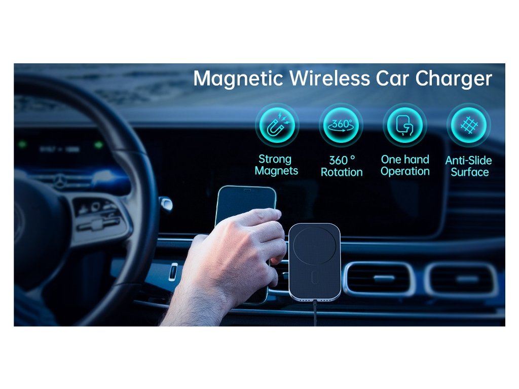 Bezdrátové nabíjení s nabíječkou MagSafe je velice jednoduché. Dokonale rozmístěné magnety přichytí a vycentrují s dobíjecí plochou modelových řad Iphone 12 a novějších. Bezdrátově se smartphony dají dobíjet výkonem až 15W. Držák s MagSafe zachovává kompatibilitu s nabíjením Qi, takže se dá používat k bezdrátovému nabíjení iPhonu 8 a novějších modelů.