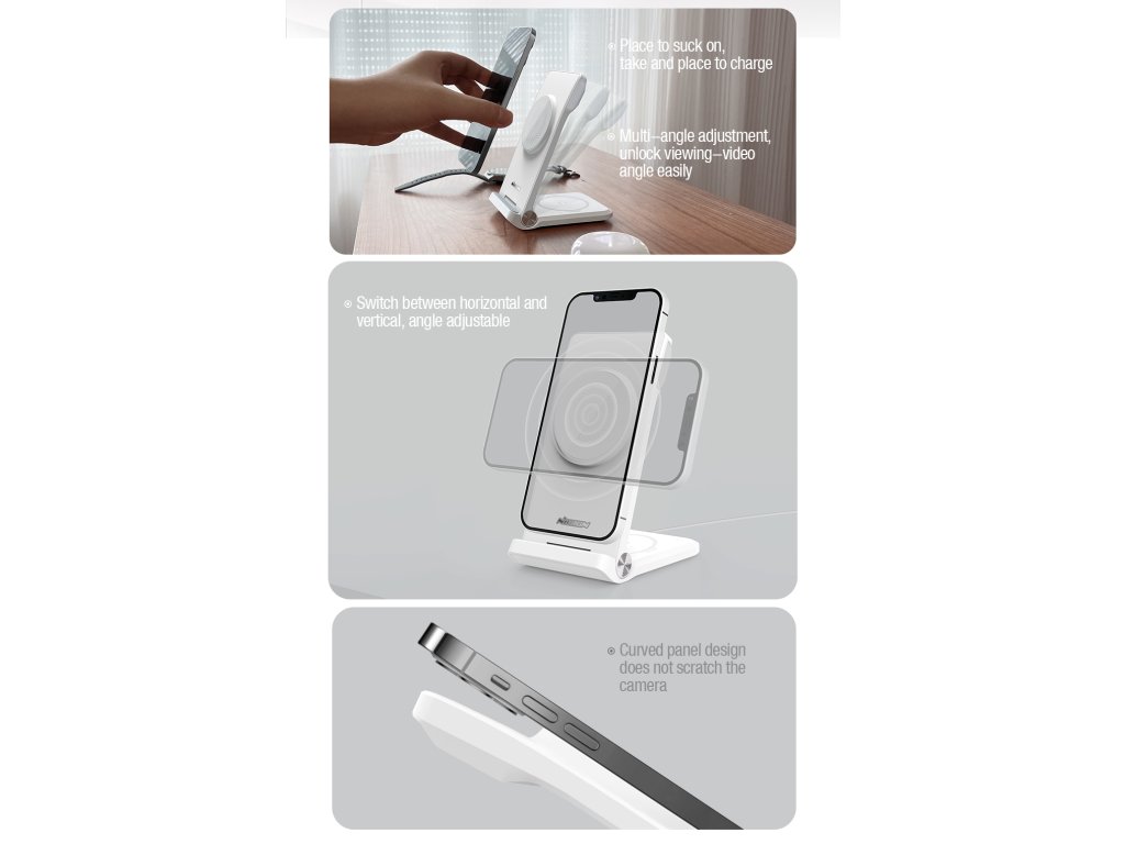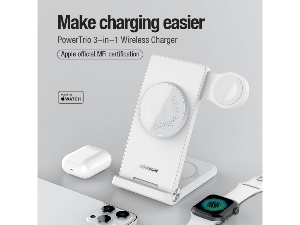 Nillkin PowerTrio 3v1 Bezdrátová Nabíječka MagSafe pro Apple Watch White (MFI)