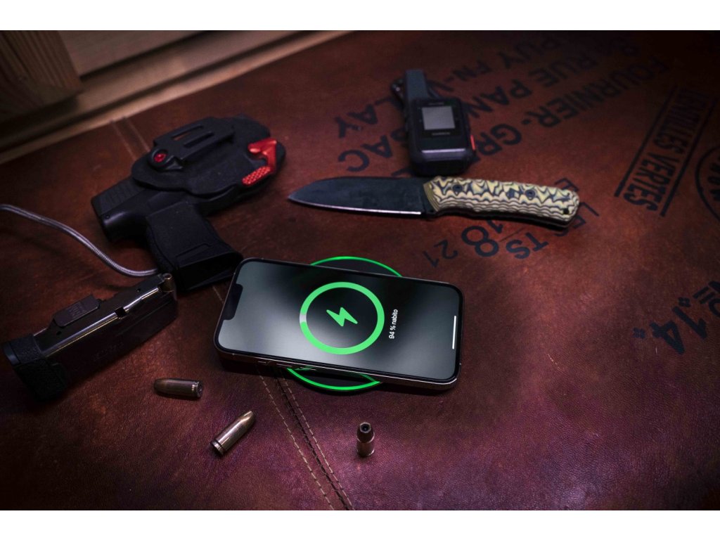 Bezdrátová nabíječka s Qi certifikací, rychlonabíjením o výkonu až 15W a protiskluzovým povrchem. Díky světelné LED navigaci vždy poznáš, jestli nabíjíš nebo už máš nabito. Výkon 15W už je skutečně dost na to využít dnešní technologie rychlonabíjení. Díky maximální vzdálenosti nabíjení 8mm tak svůj telefon můžeš v klidu nechat v pouzdře a nabíjet ho v něm. Tactical Base Plug Wireless nabije i pouzdro bezdrátových sluchátek. LED kruh Díky světelné LED signalizaci budeš mít vždy přehled o tom, co se děje. Zelená pro šťávu, modrá už je plno, blikačka se něco děje. Využij také systém detekce nechtěného předmětu, kdy se nabíječka vypne a přestane předávat proud. Camo Nabíječku jsme navrhli do taktických barev s kamufláží. Je tedy nezaměnitelná a pasuje do všech interiérů. Neodolatelně odolná U nás v Tactical dbáme na to, aby věci něco vydržely. Proto nabíječka v této kategorii nabízí jen to nejlepší. Při výrobě jsme použili velice odolné a nehořlavé materiály, aplikovali STANDARD UL94 a vše opatřili čtyř stupňovou ochranou proti přebití, přehřátí, přetížení a zkratu. BE ECO My v Tactical máme rádi přírodu. Všechny naše produkty jsou balené do ECO krabiček z recyklovaného papíru tak, aby co nejméně zatěžovaly životní prostředí. Myslete takticky! KLÍČOVÉ VLASTNOSTI Bezdrátové nabíjení Qi Rychlonabíjení 15W LED indikace Protiskluzový povrch SPECIFIKACE - Délka kabelu: 1m - Konektor: USB-C - Input USB-C: DC 12V/2A, 9V/2A, 5V/2A - Output Wireless: DC 12V/1,5A, 9V/2A - Maximální výkon: 15W - Rychlonabíjení: Ano - Nabíjecí vzdálenost: <8mm - Rozměry: 100mm x 6mm - Ochrana proti zkratu a přepětí - Detekce cizího objektu - Materiál: ABS, silikon - Efektivita: >73% - kompatibilita: telefon/sluchátka Telefony Apple s podporou bezdrátového nabíjení iPhone 14 Pro Max iPhone 14 Pro iPhone 14 Plus iPhone 14 iPhone 13 Pro Max iPhone 13 Pro iPhone 13 Mini iPhone 13 iPhone 12 Pro Max iPhone 12 Pro iPhone 12 iPhone 12 Mini iPhone SE 2. generace iPhone 11 Pro Max iPhone 11 Pro iPhone 11 iPhone XS Max iPhone XS iPhone XR iPhone X iPhone 8 Plus iPhone 8Doplňkové parametry