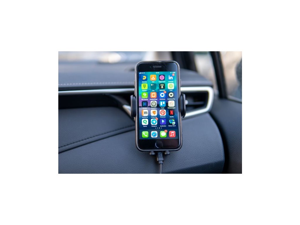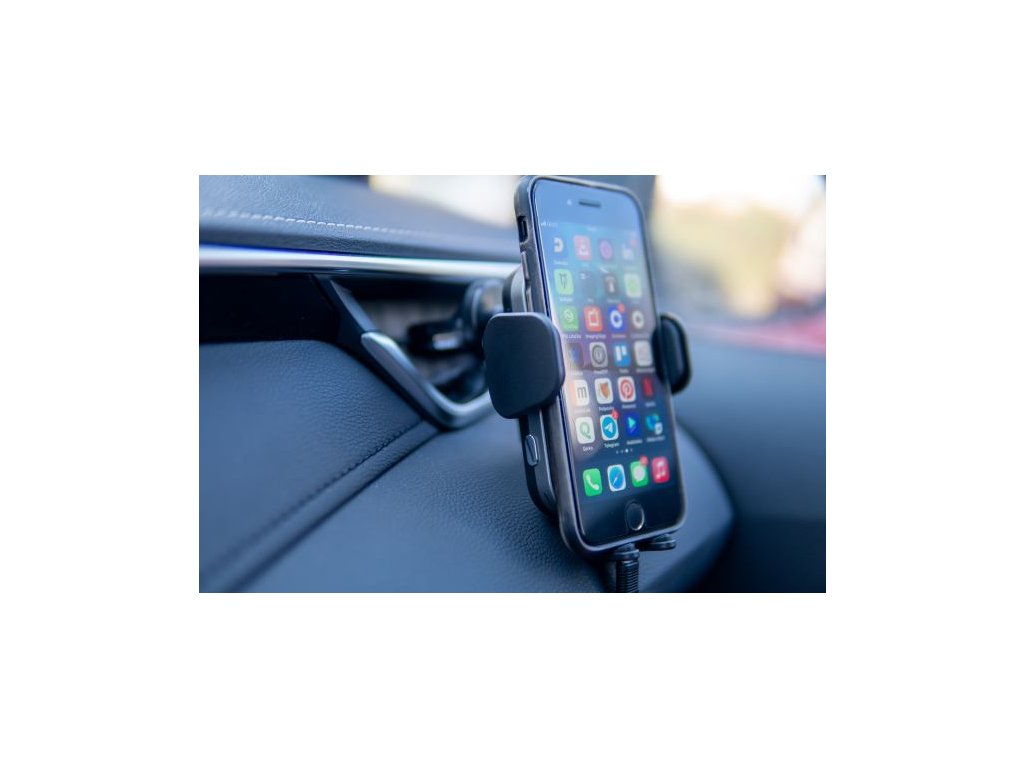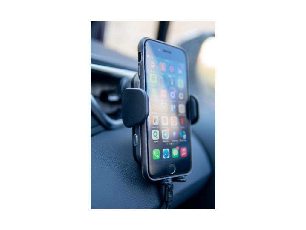 Držák je vybaven elektronikou, která detekuje přiložení smartphonu a držák sám telefon upevní. Po stisknutí elektronického tlačítka se telefon opět uvolní. Držák má integrovaný kondenzátor a tak lze smartphon několikrát uvolnit nebo upevnit i po zastavení vozidla a vypnutí motoru. Díky automatickému zavírání se snadno manipuluje se smartphonem jen jednou rukou.