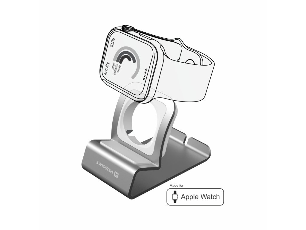 SWISSTEN HLINÍKOVÝ STOJÁNEK PRO APPLE WATCH STŘÍBRNÝ