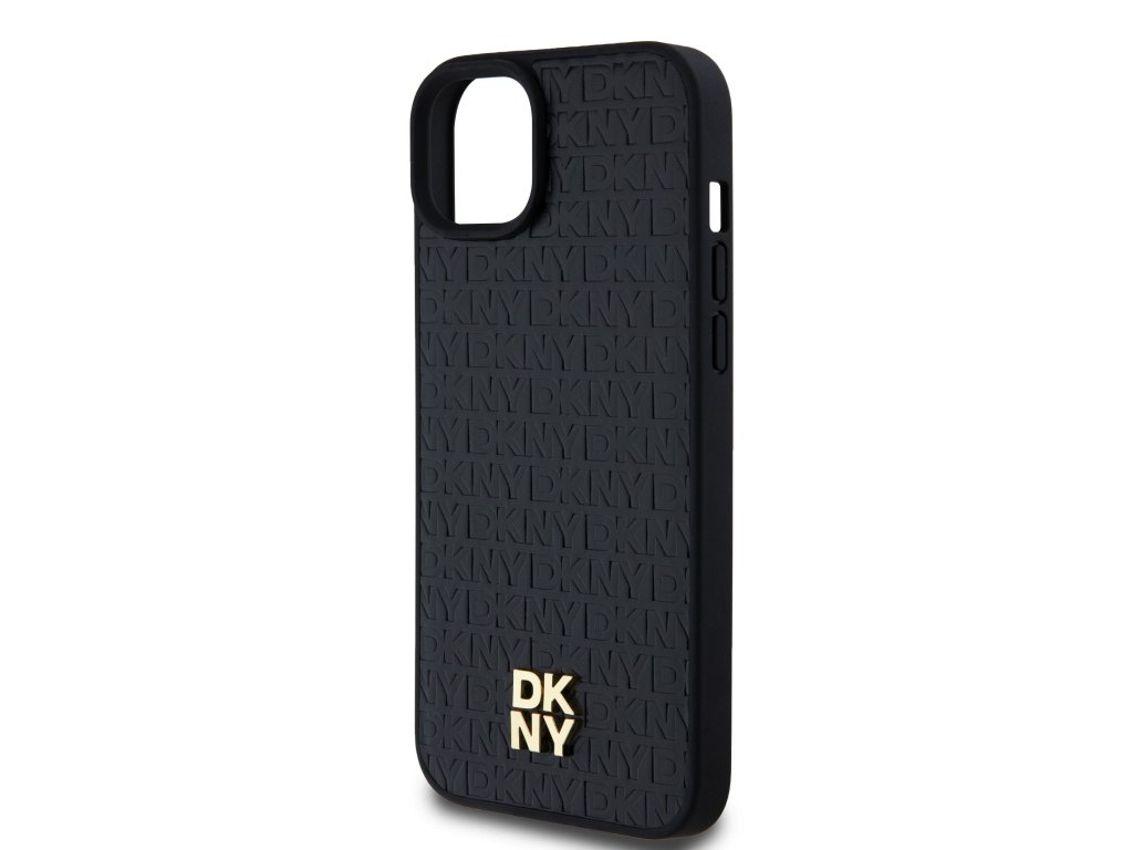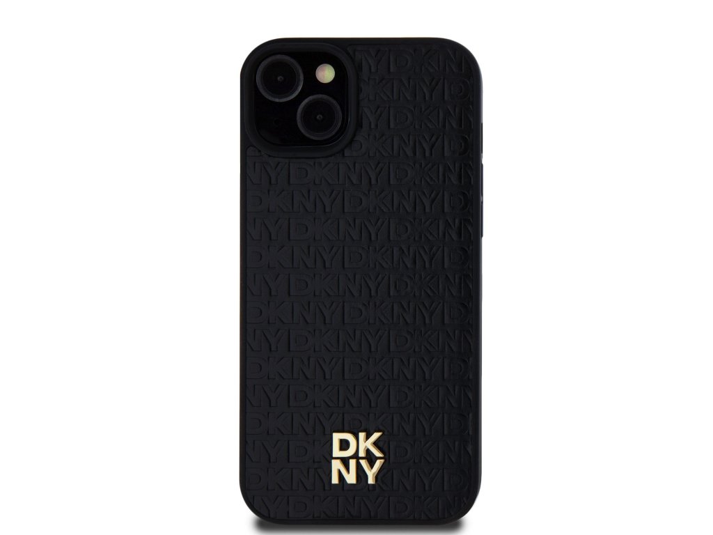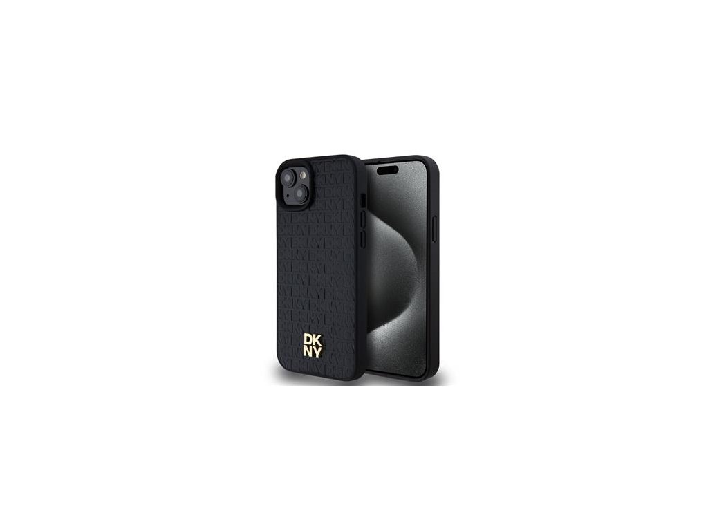 DKNY PU Leather Repeat Pattern Stack Logo Magsafe Zadní Kryt pro iPhone 15 Plus Black