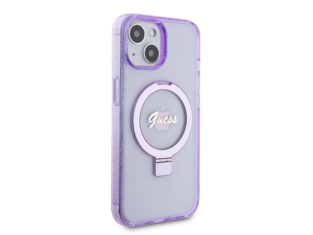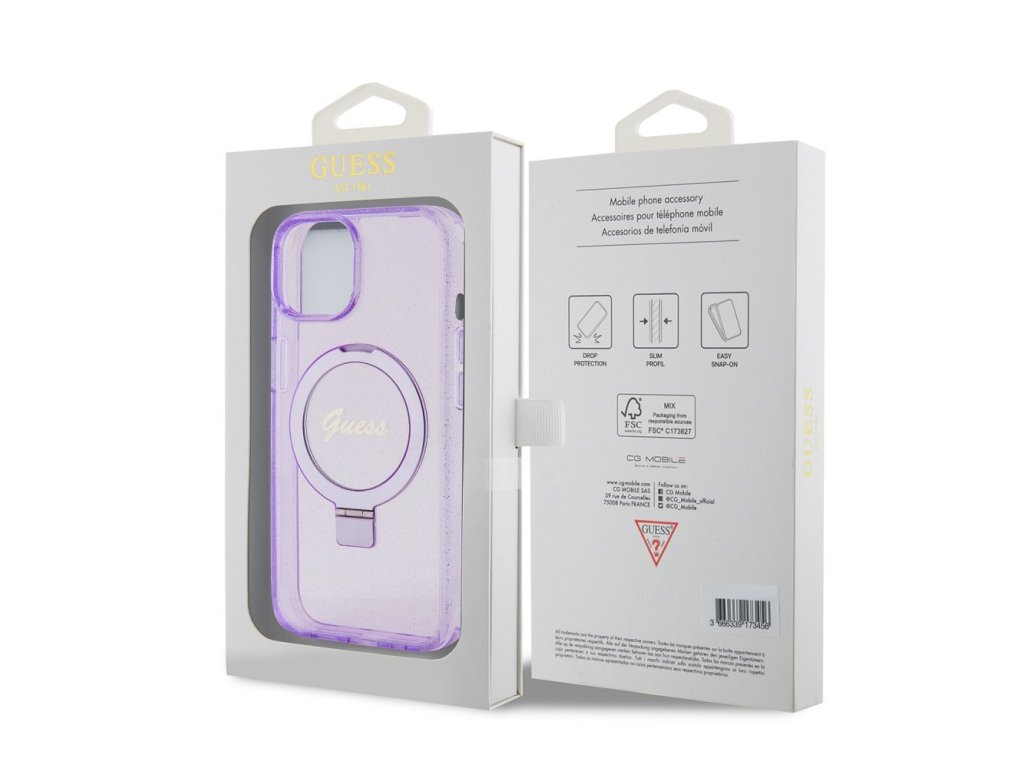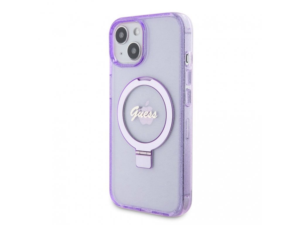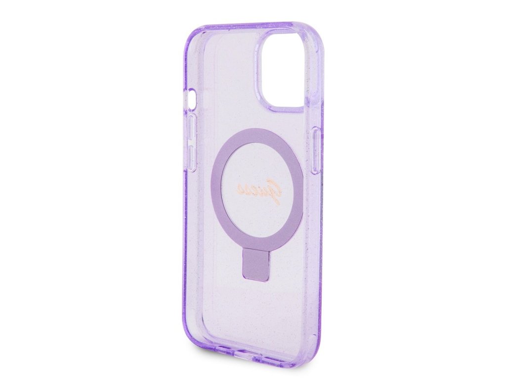Guess IML Ring Stand Glitter MagSafe Zadní Kryt pro iPhone 15 Plus Purple