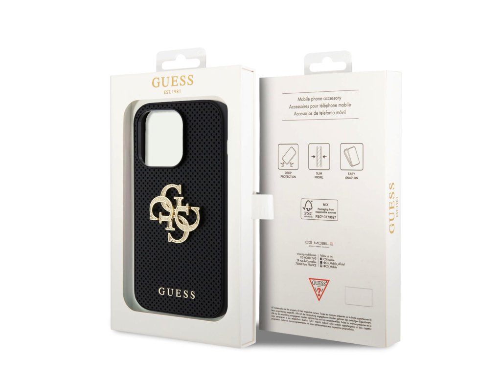 GUESS PU Perforated 4G Glitter Metal Logo Zadní Kryt pro iPhone 15 Pro Max Black