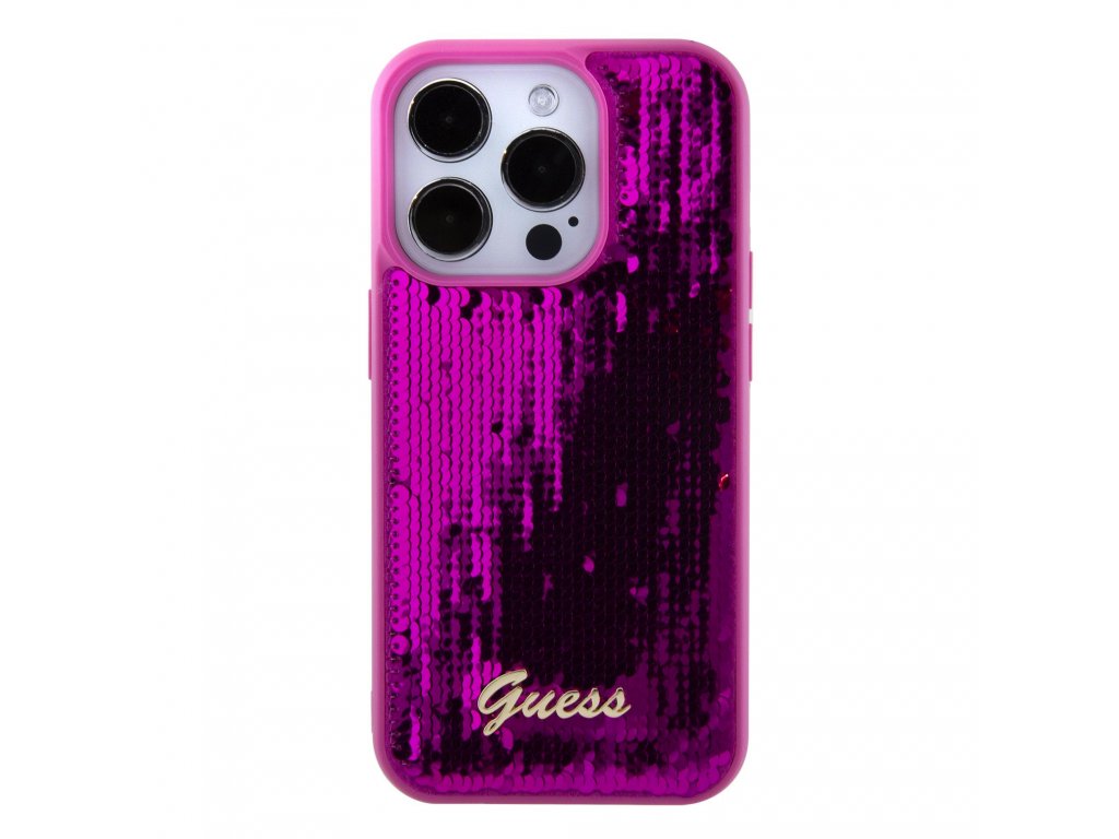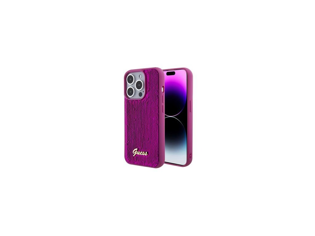 GUESS Sequin Script Logo Zadní Kryt pro iPhone 15 Pro Max Magenta