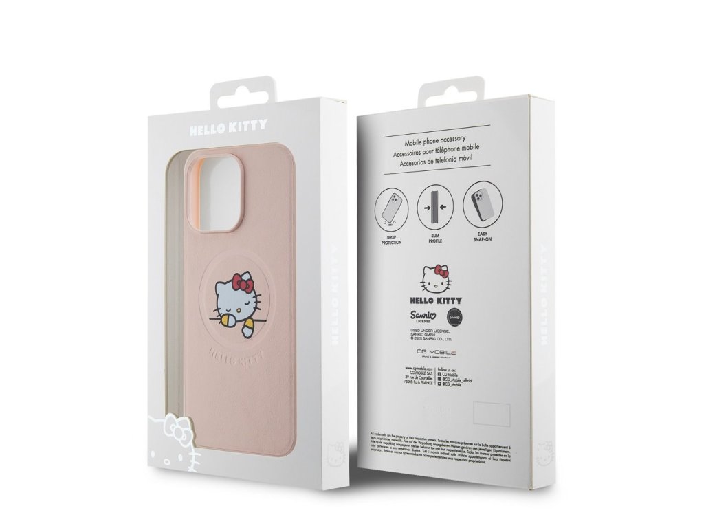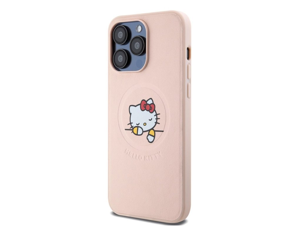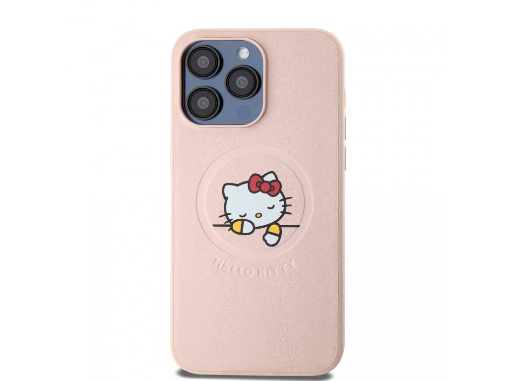 Hello Kitty PU Kitty Asleep Logo MagSafe Zadní Kryt pro iPhone 15 Pro Max Pink