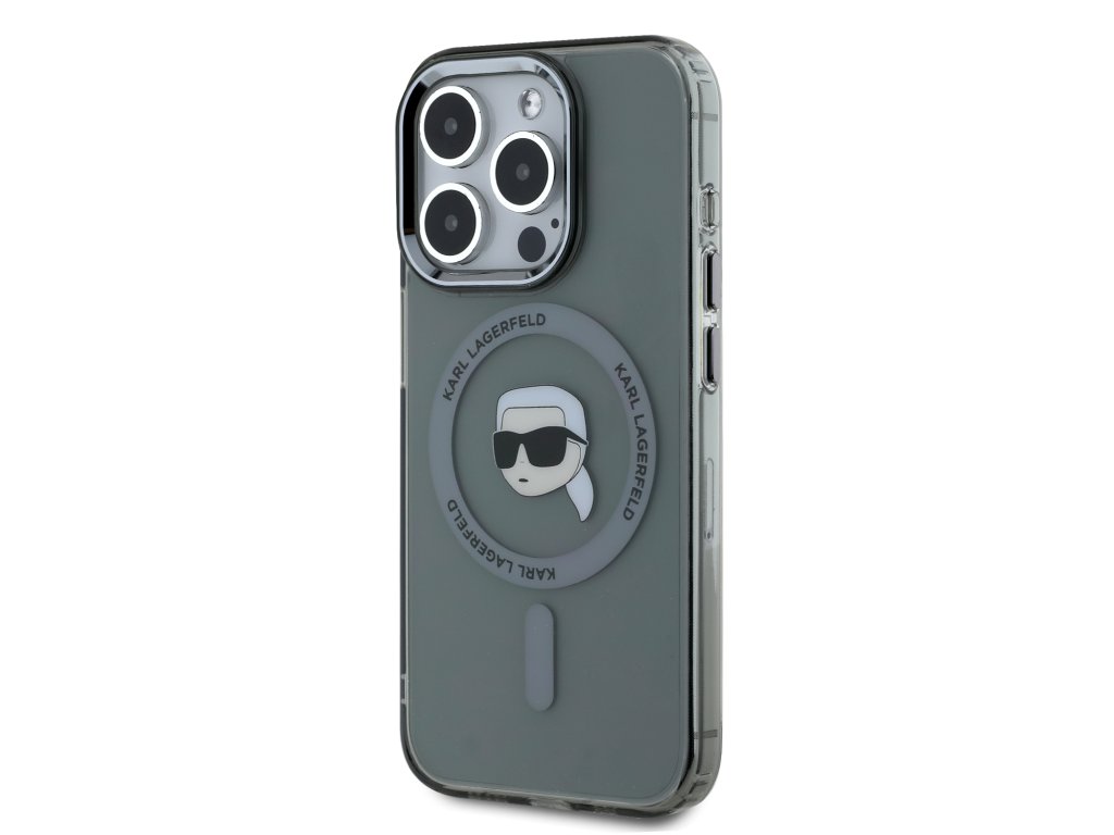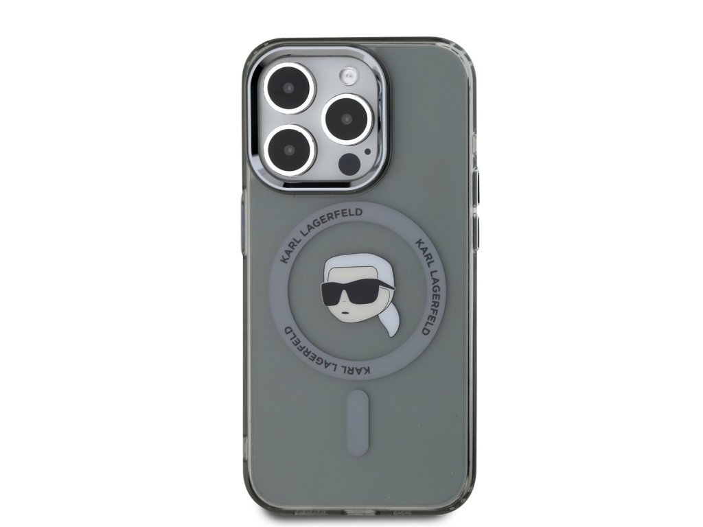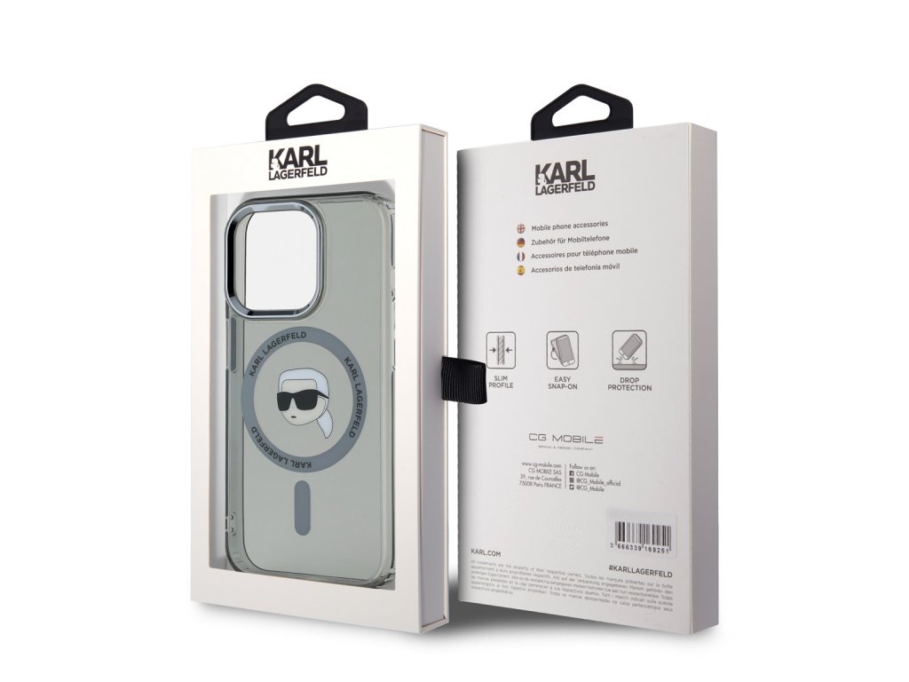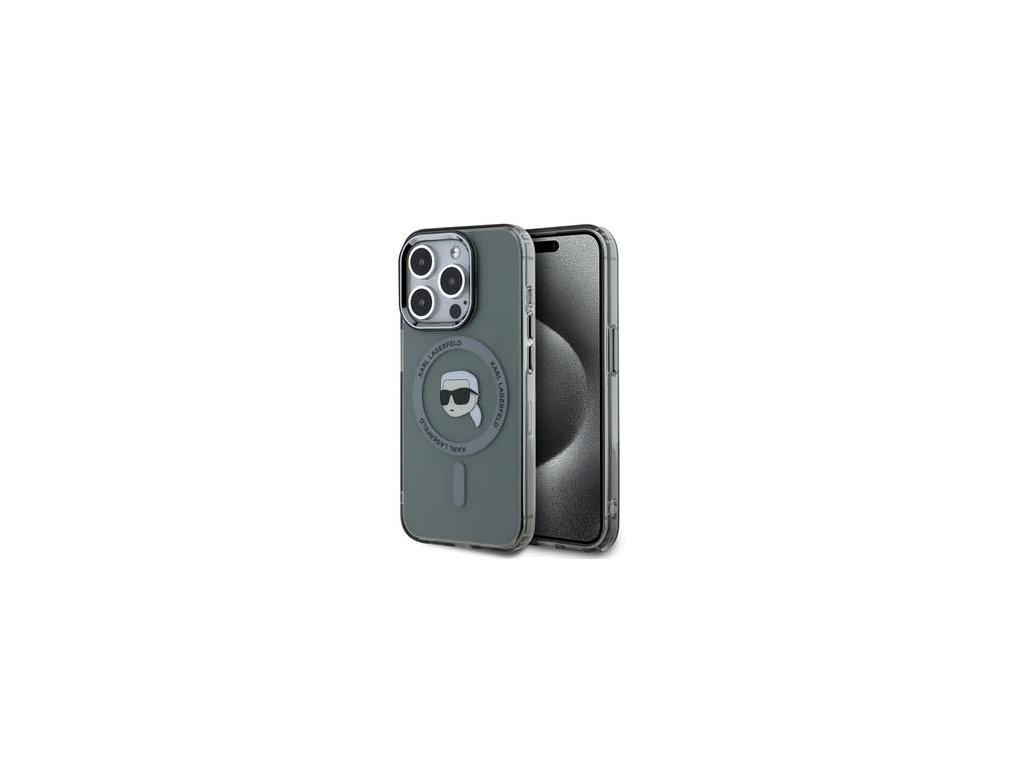 Karl Lagerfeld IML Karl Head Metal Frame MagSafe Zadní Kryt pro iPhone 15 Pro Max Black