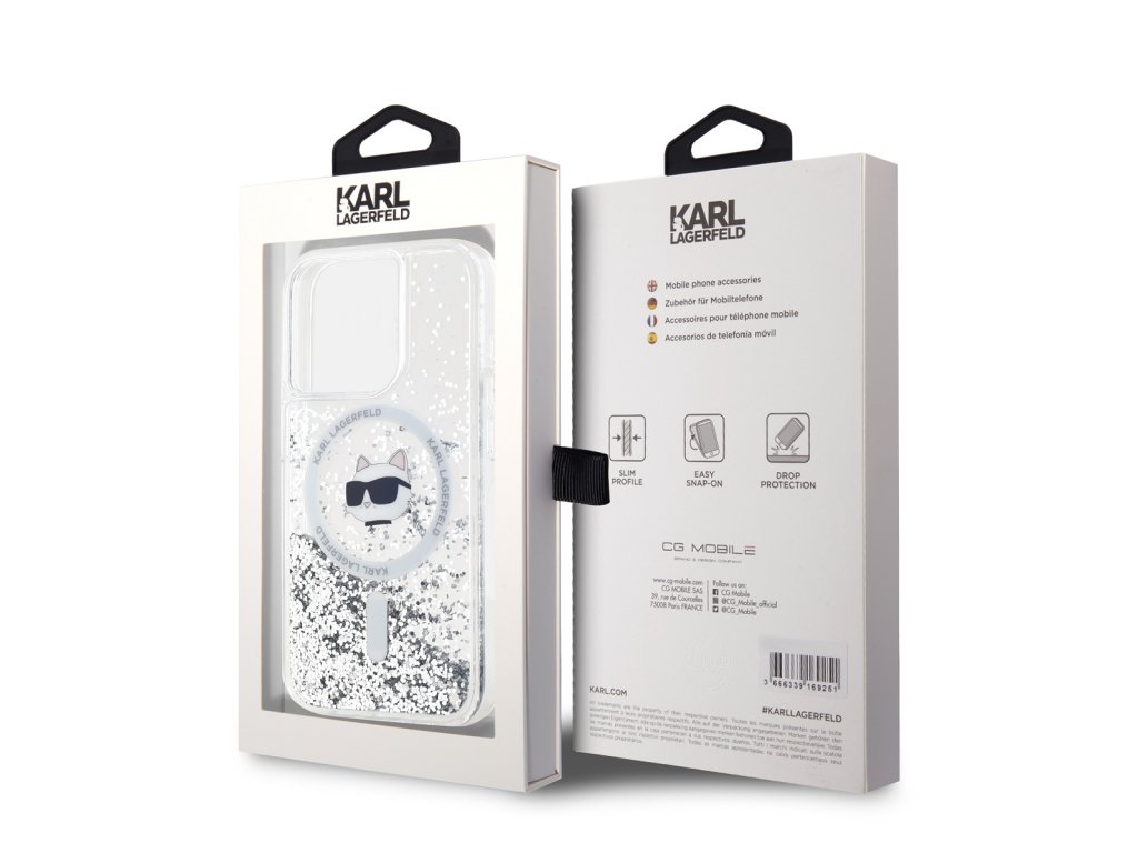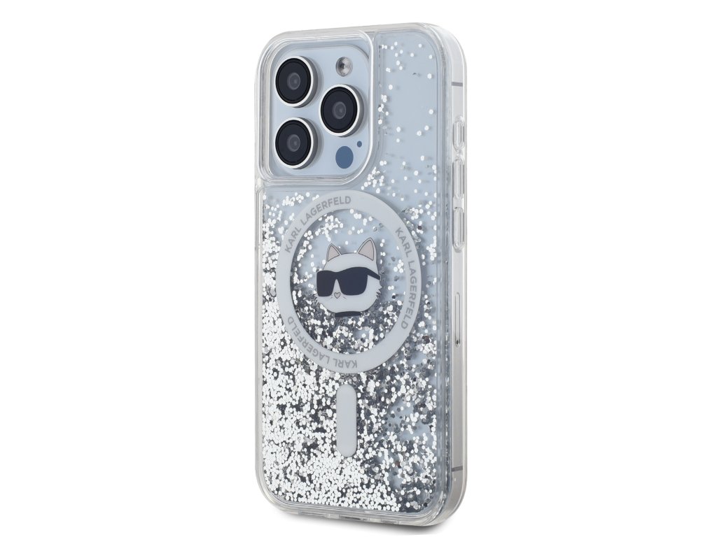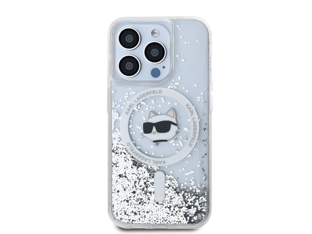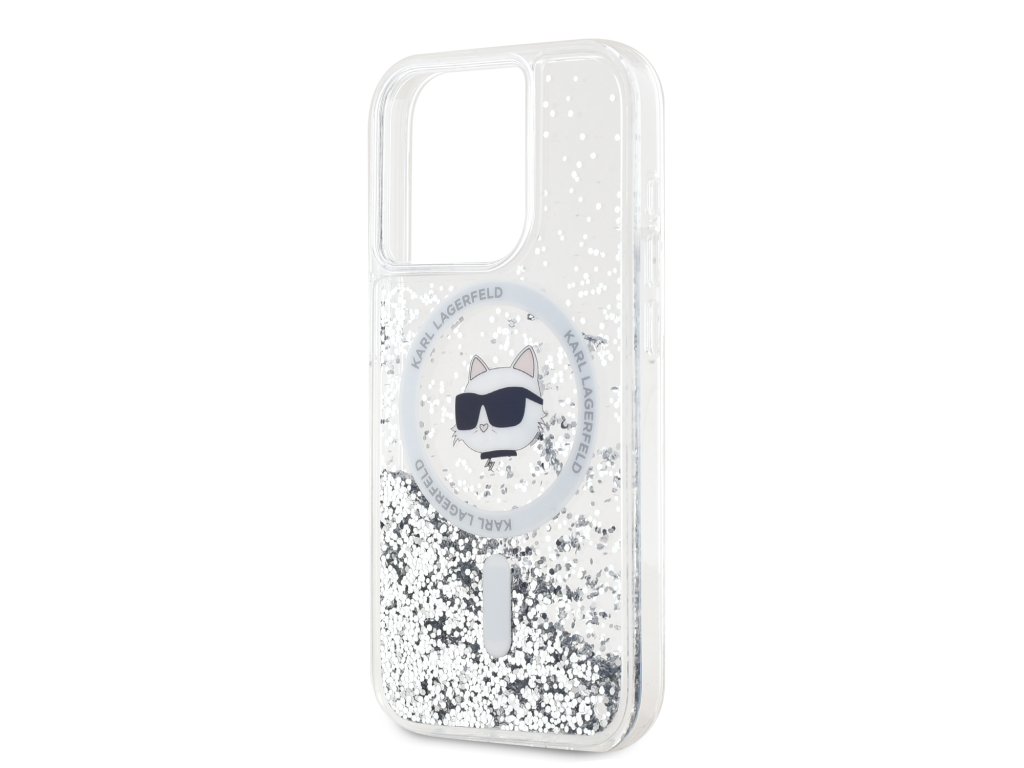 Karl Lagerfeld Liquid Glitter Choupette Head MagSafe Zadní Kryt pro iPhone 15 Pro Max Transparent