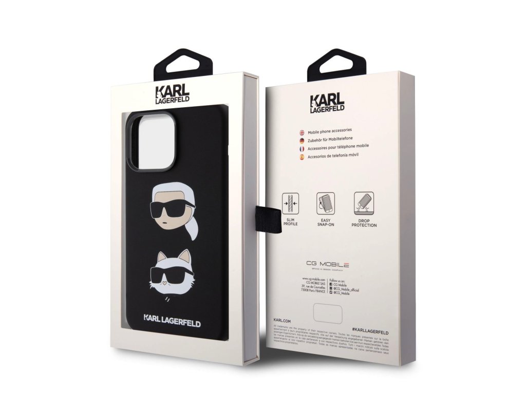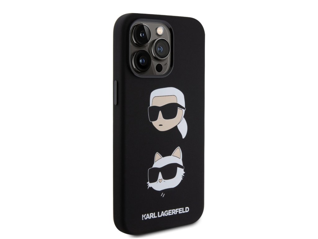 Karl Lagerfeld Liquid Silicone Karl and Choupette Heads Zadní Kryt pro iPhone 15 Pro Max Black
