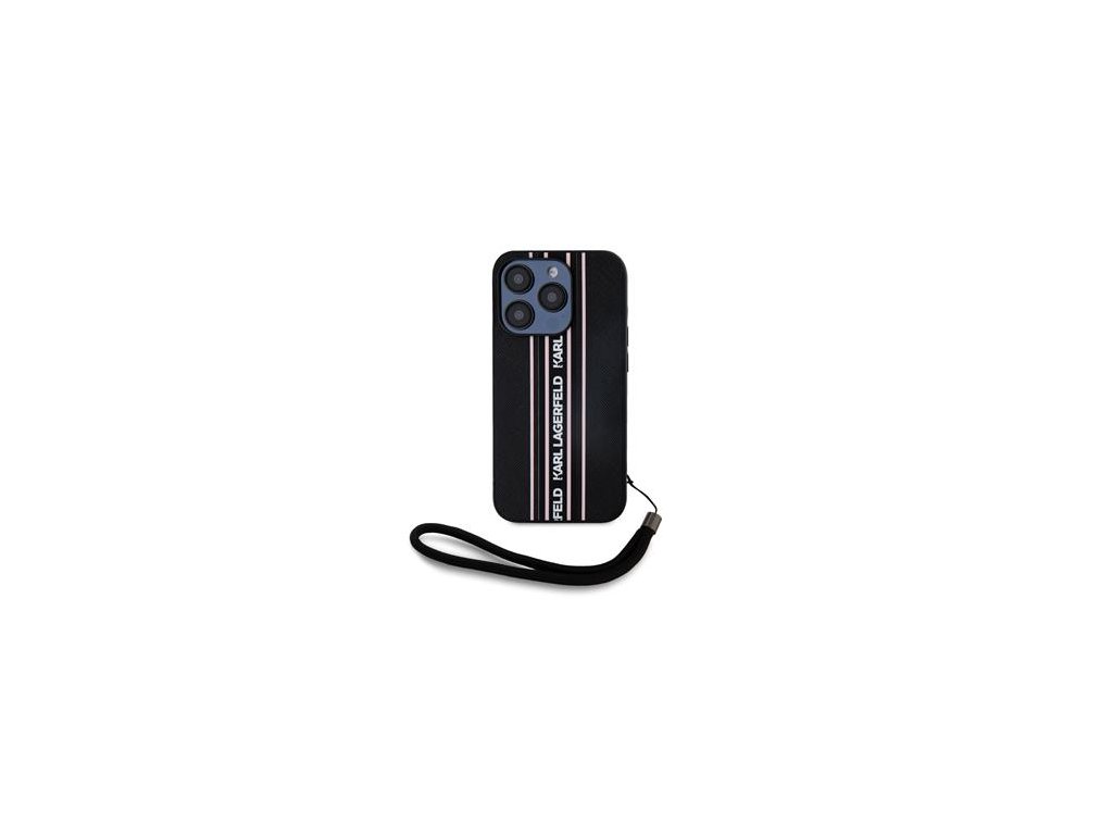 Karl Lagerfeld PU Saffiano Athleisure Stripe and Strap Zadní Kryt pro iPhone 15 Pro Max Pink