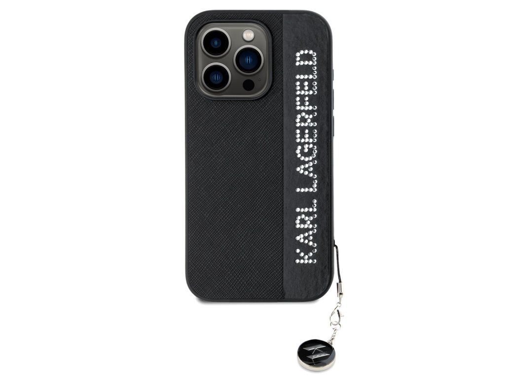 Karl Lagerfeld PU Saffiano Rhinestone Charm Zadní Kryt pro iPhone 15 Pro Max Black