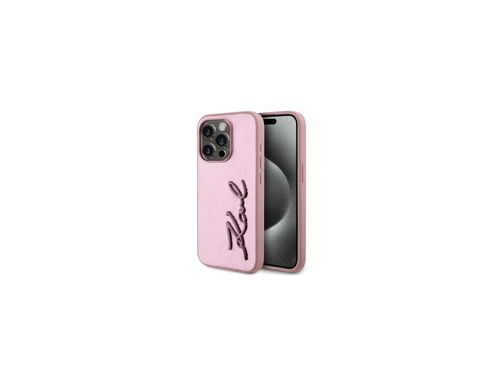 Karl Lagerfeld Wrinkled PU Signature Logo Zadní Kryt pro iPhone 15 Pro Max Pink