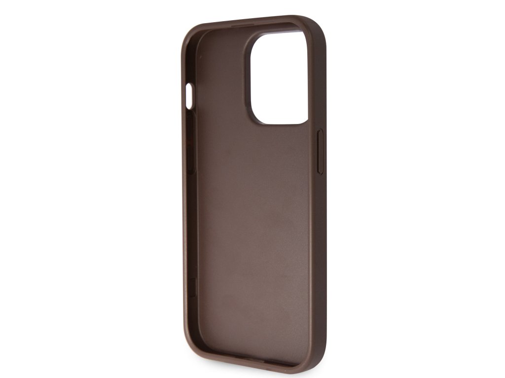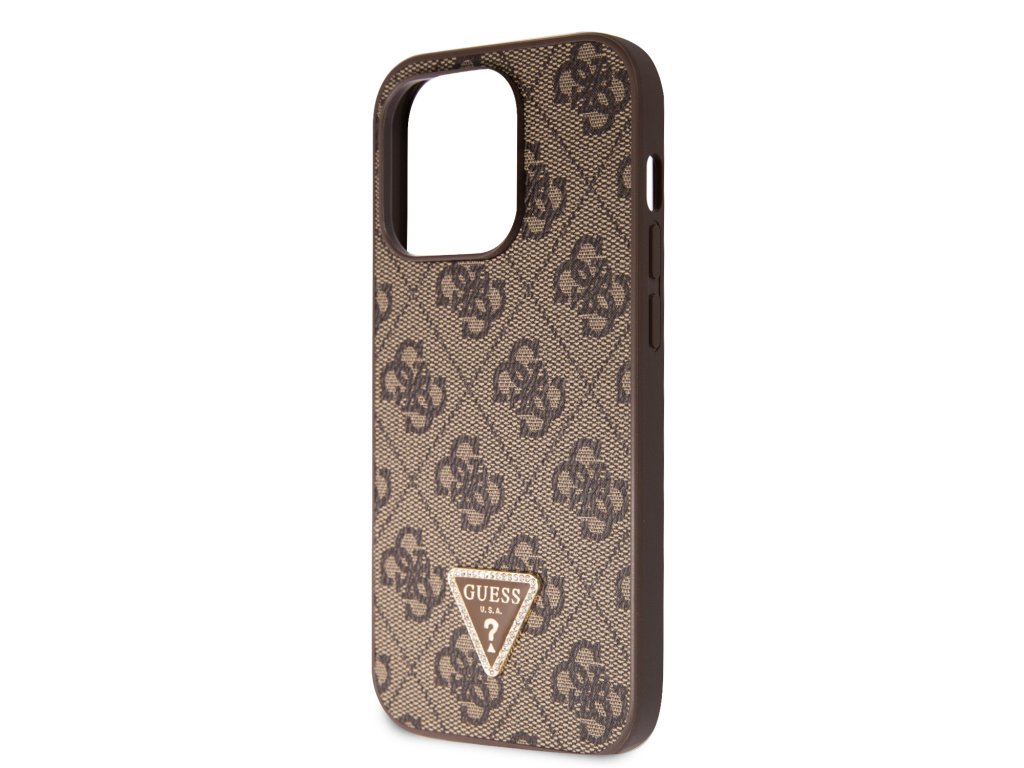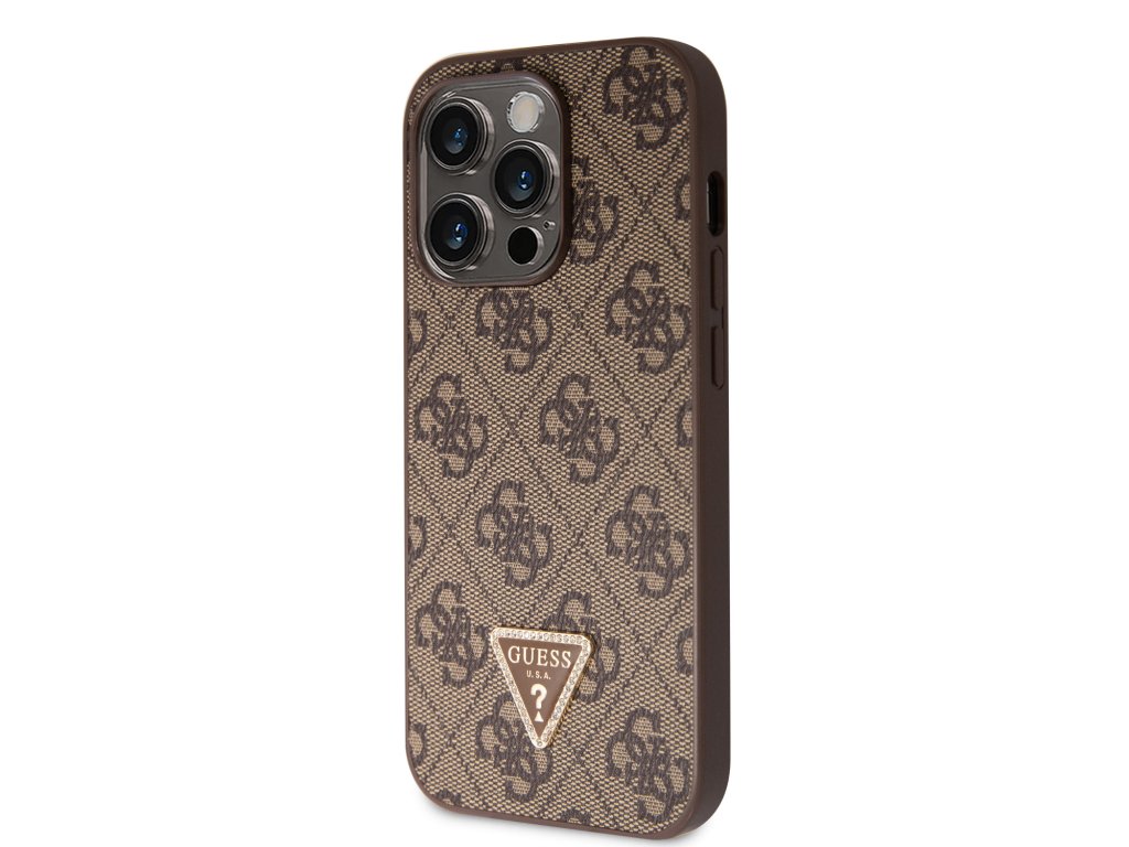 GUESS PU 4G Strass Triangle Metal Logo Zadní Kryt pro iPhone 15 Pro Brown