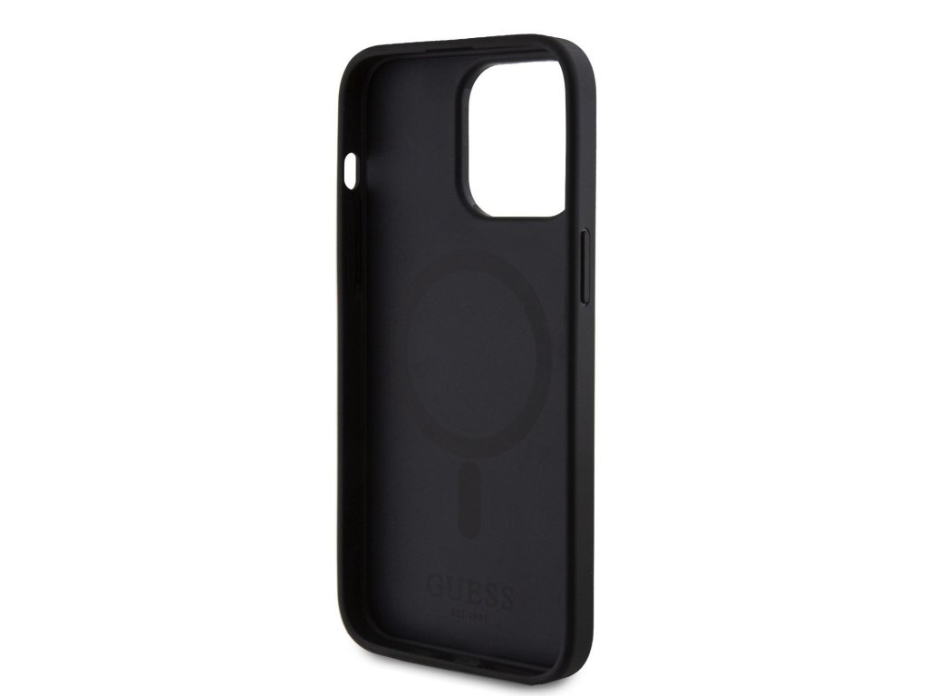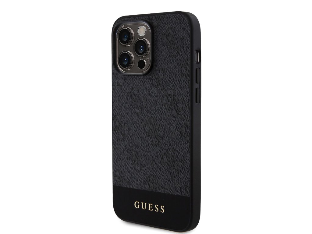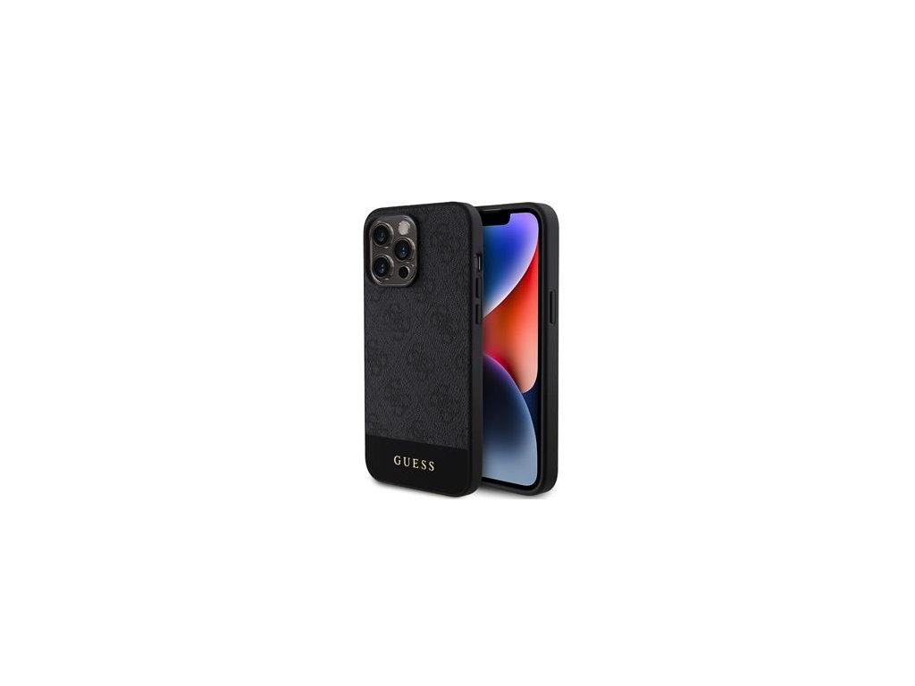 GUESS PU 4G Stripe MagSafe Zadní Kryt pro iPhone 15 Pro Black