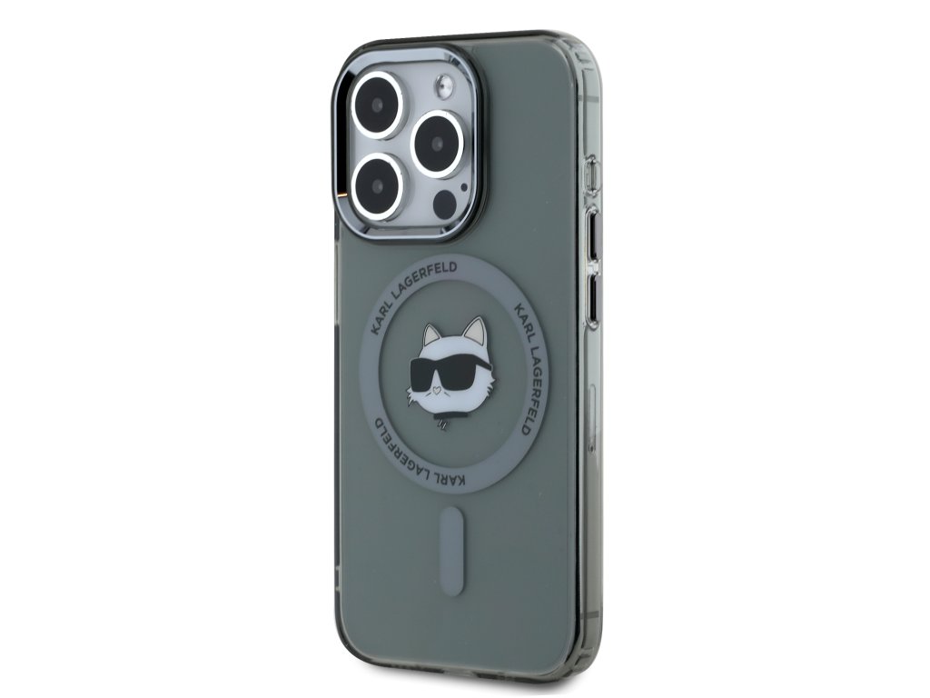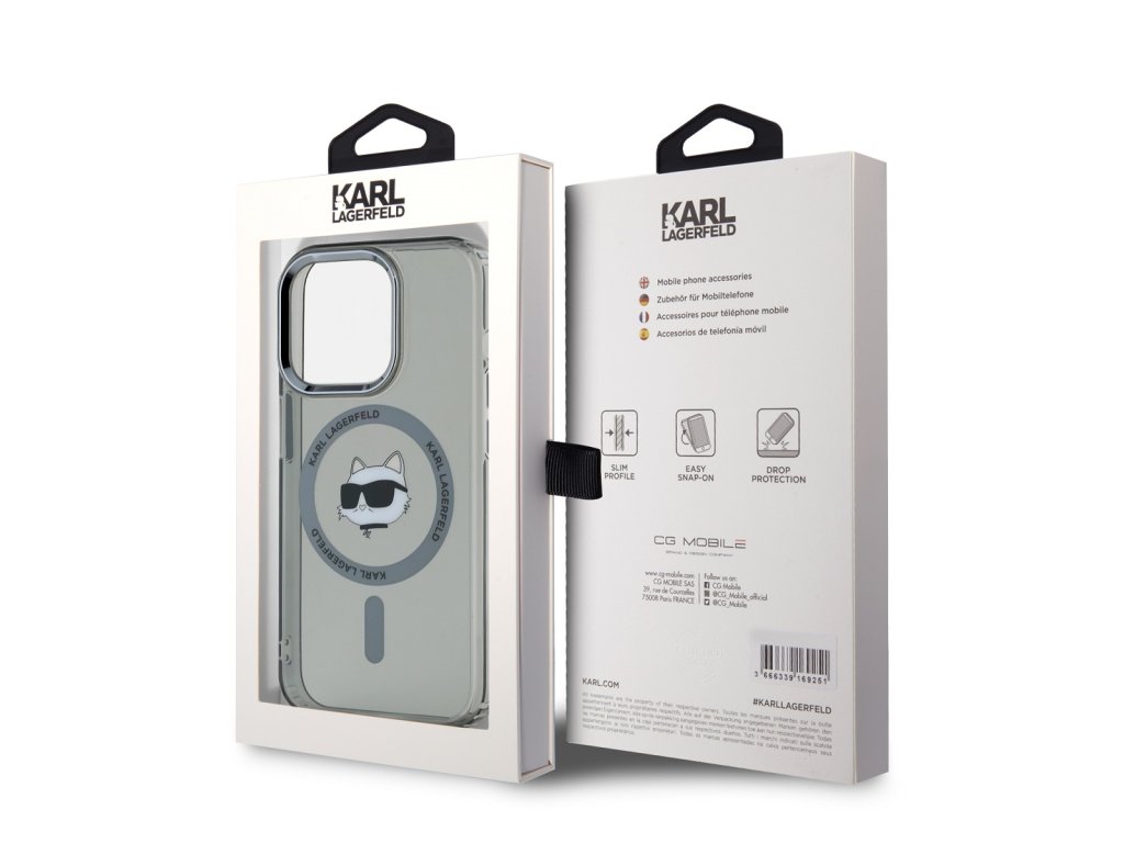Karl Lagerfeld IML Choupette Head Metal Frame MagSafe Zadní Kryt pro iPhone 15 Pro Black