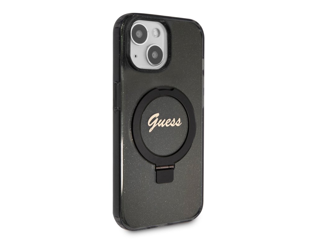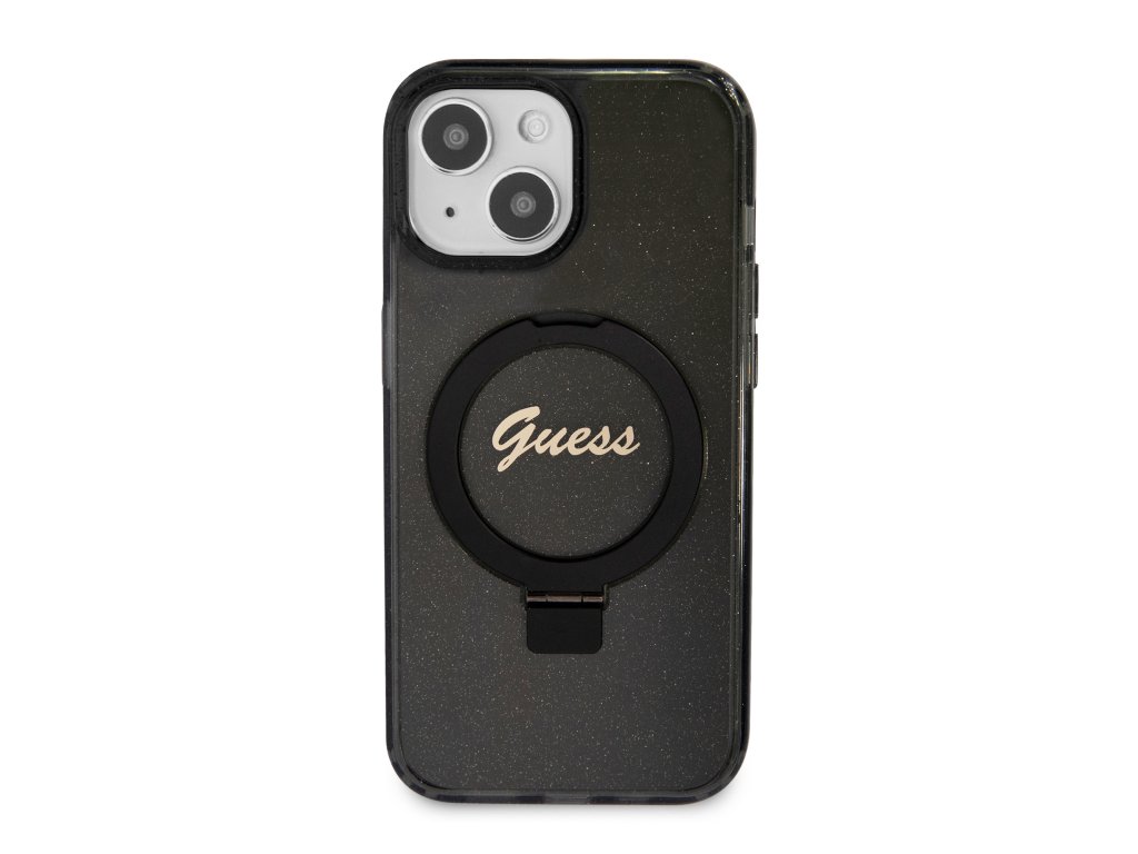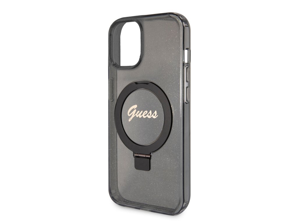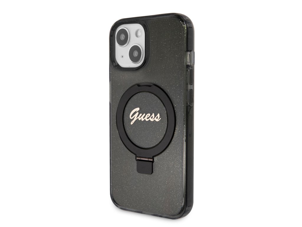 GUESS IML Ring Stand Glitter MagSafe Zadní Kryt pro iPhone 15 Black