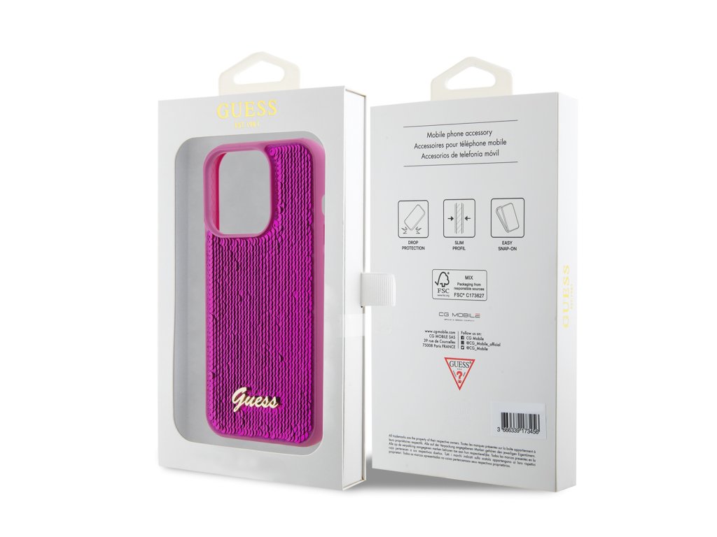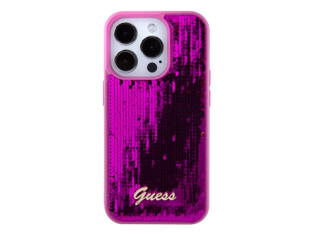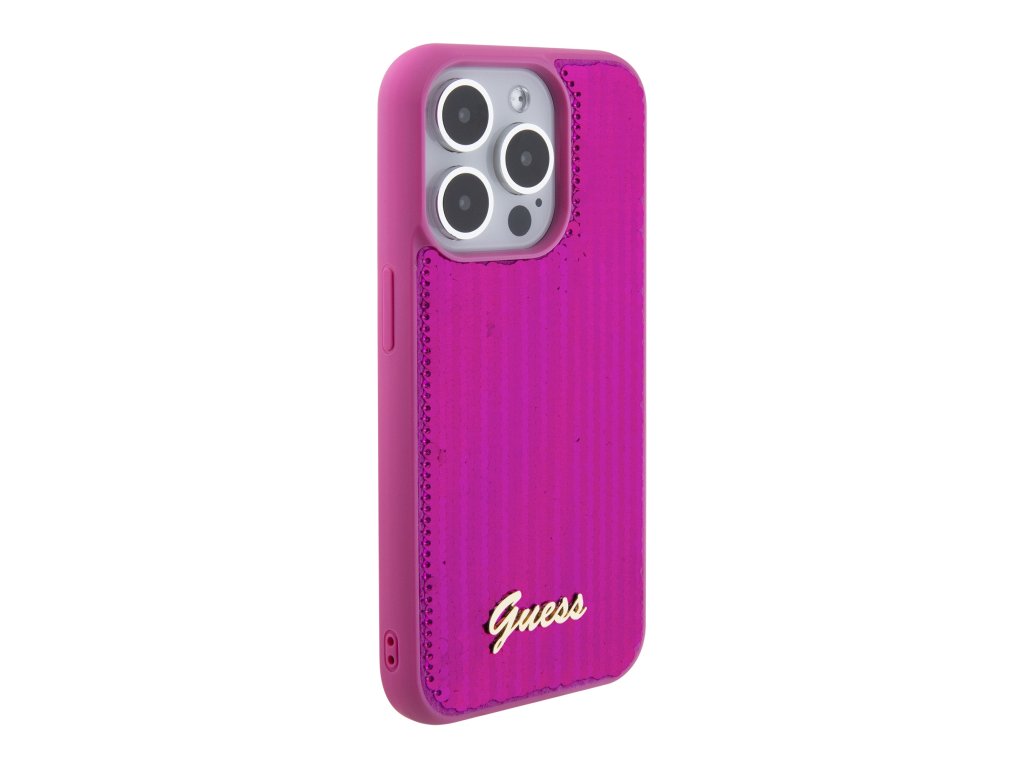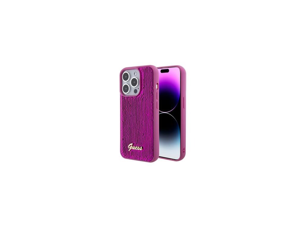 GUESS Sequin Script Logo Zadní Kryt pro iPhone 15 Magenta