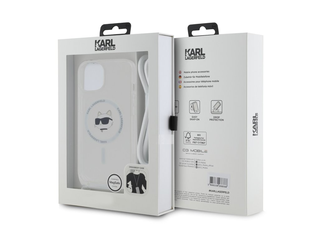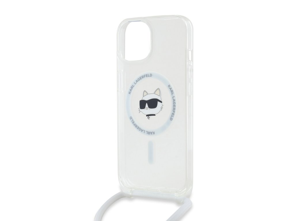 Karl Lagerfeld IML Crossbody Choupette Head Magsafe Zadní Kryt pro iPhone 15 Transparent