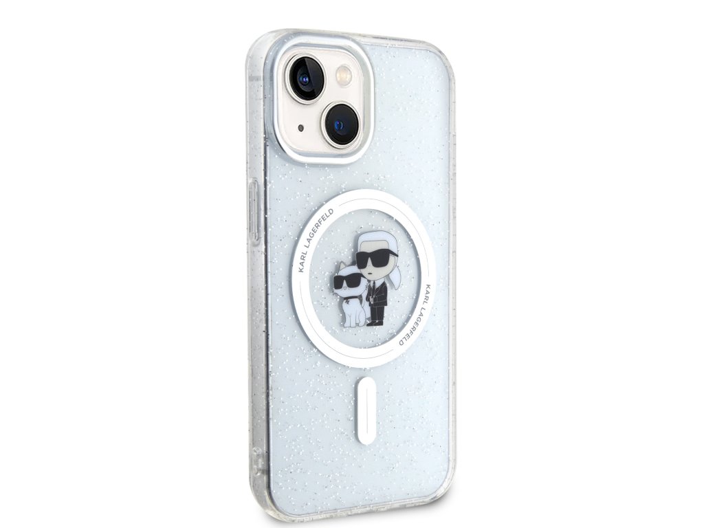 Karl Lagerfeld IML Glitter Karl and Choupette MagSafe Zadní Kryt pro iPhone 15 Transparent