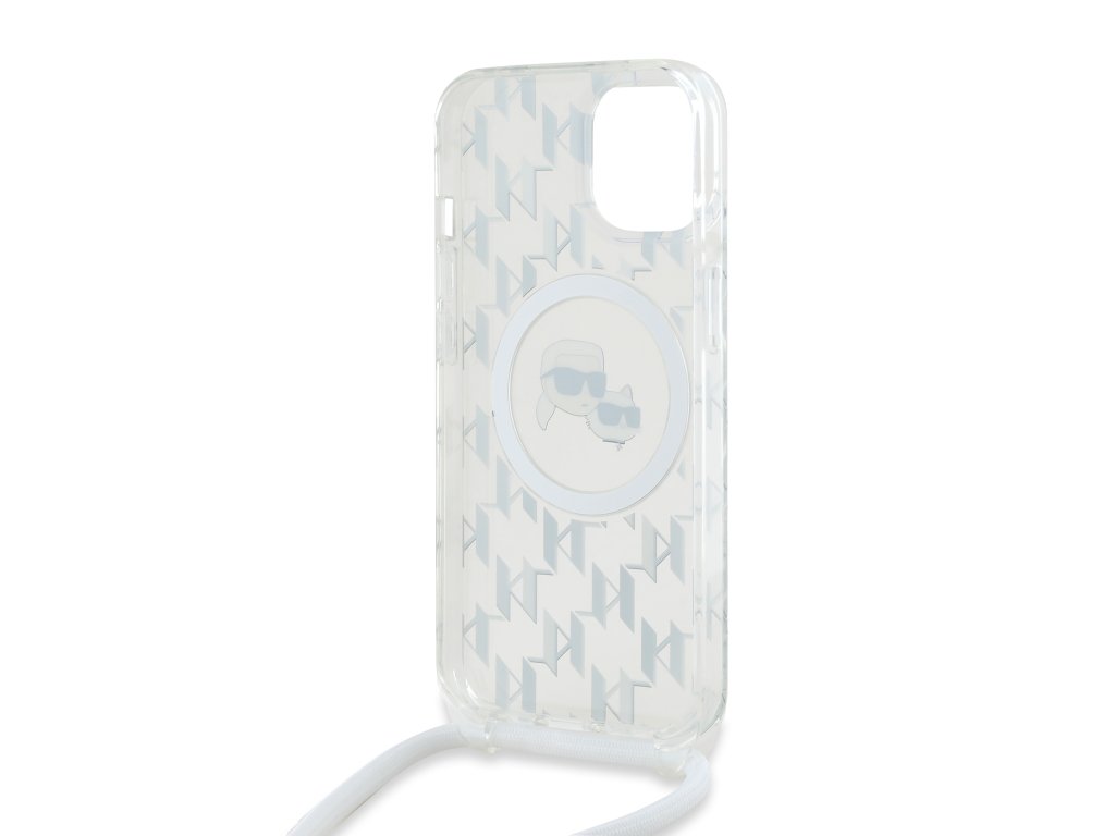 Karl Lagerfeld IML Monogram Crossbody K&CH Heads MagSafe Zadní Kryt pro iPhone 15 Transparent