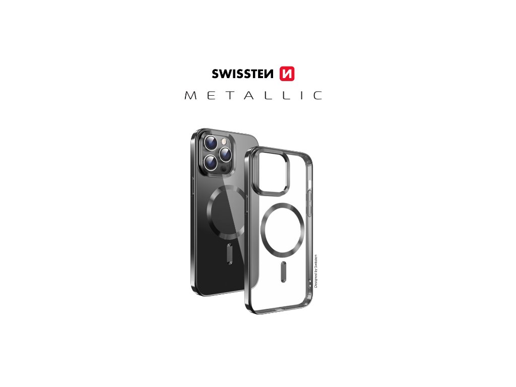 Luxusní čiré pouzdro SWISSTEN MagStick Metallic s elegantním černým rámečkem a metalickými doplňky. Vhodné pro dobíjení MagSafe. Baleno v blistru SWISSTEN MagSafe Bezdrátové nabíjení s pouzdrem MagStick je velice jednoduché. Dokonale rozmístěné magnety na nabíječce vycentrují pouzdro s dobíjecí plochou nabíječky s MagSafe. Zpracování Pouzdro je vyrobeno z čirého silikonu v kombinaci s černýmí silikonovými hranami. Atraktivní design dodávají pouzdru metalické doplňky na zadní čísti pouzdra.Doplňkové parametry