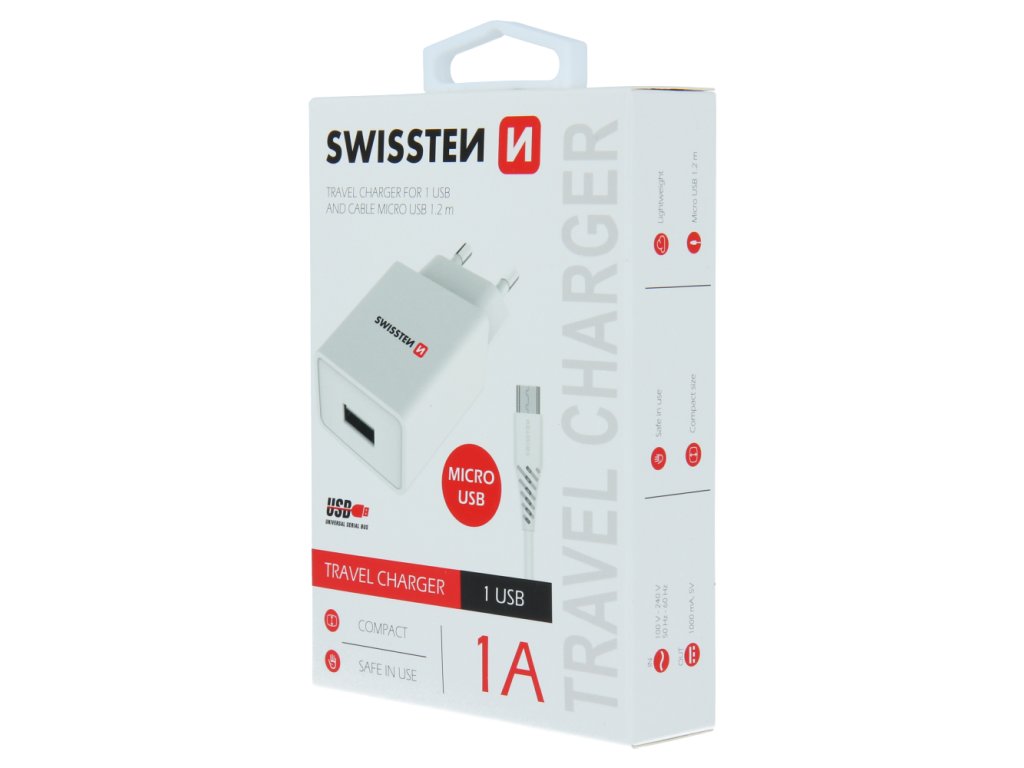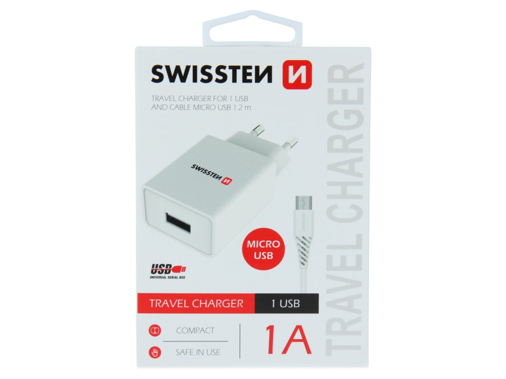 Kvalitní nabíječka SWISSTEN s výstupním proudem 1A. Nabíječka má výstup 1xUSB a kabel USB/microUSB 1,2m. Baleno v blistru SWISSTEN