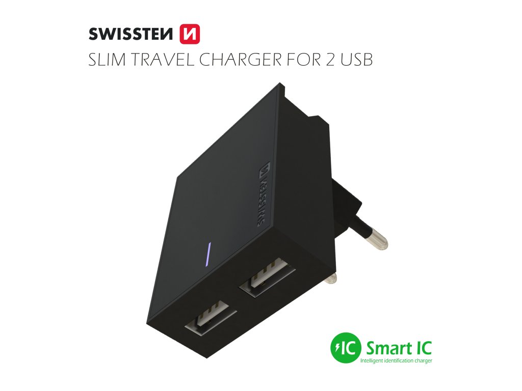 Jedinečná SLIM nabíječka s výstupním proudem 3A, technologií Smart IC, stojánkem pro umístění smartphonu, dvěma USB porty. Lze využít za nábytek, do zásuvky ve volném prostoru nebo kdekoliv jako držák smartphonu. V balení 1,2 m dlouhý kabel USB/USB-C. Baleno v blistru SWISSTEN