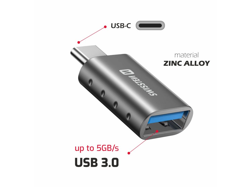 Adaptér - Swissten - USB-A na USB-C - Šedý