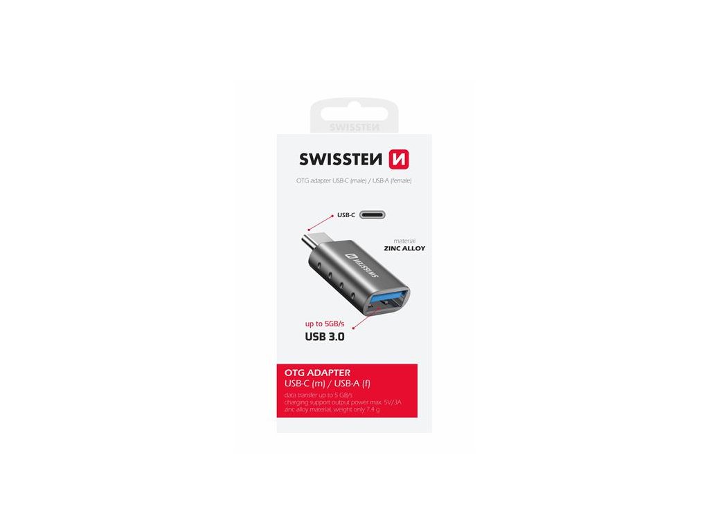 SWISSTEN OTG ADAPTER USB-C(M)/USB-A(F) pro připojení příslušenství s konektorem USB do zařízení s USB-C. Baleno v blistru SWISSTEN