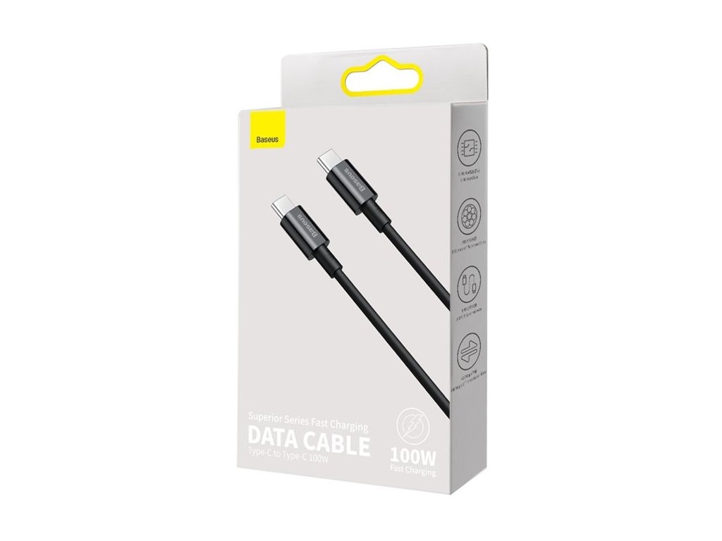 Baseus Superior USB-C na USB-C nabíjecí a datový kabel s podporou až 100W nabíjení. Délka kabelu je 2m, je vyroben z odolného ABS plastu se zesílenými koncovkami pro dlouhou životnost. V balení navíc najdete pásek se suchým zipem, pro pohodlné přenášení. Navíc délka nadstandartní 2metry Specifikace - Materiál: ABS+TPE - Výkon 100W Max. - Přenosová rychlost: 480Mbps - Délka 2mDoplňkové parametry