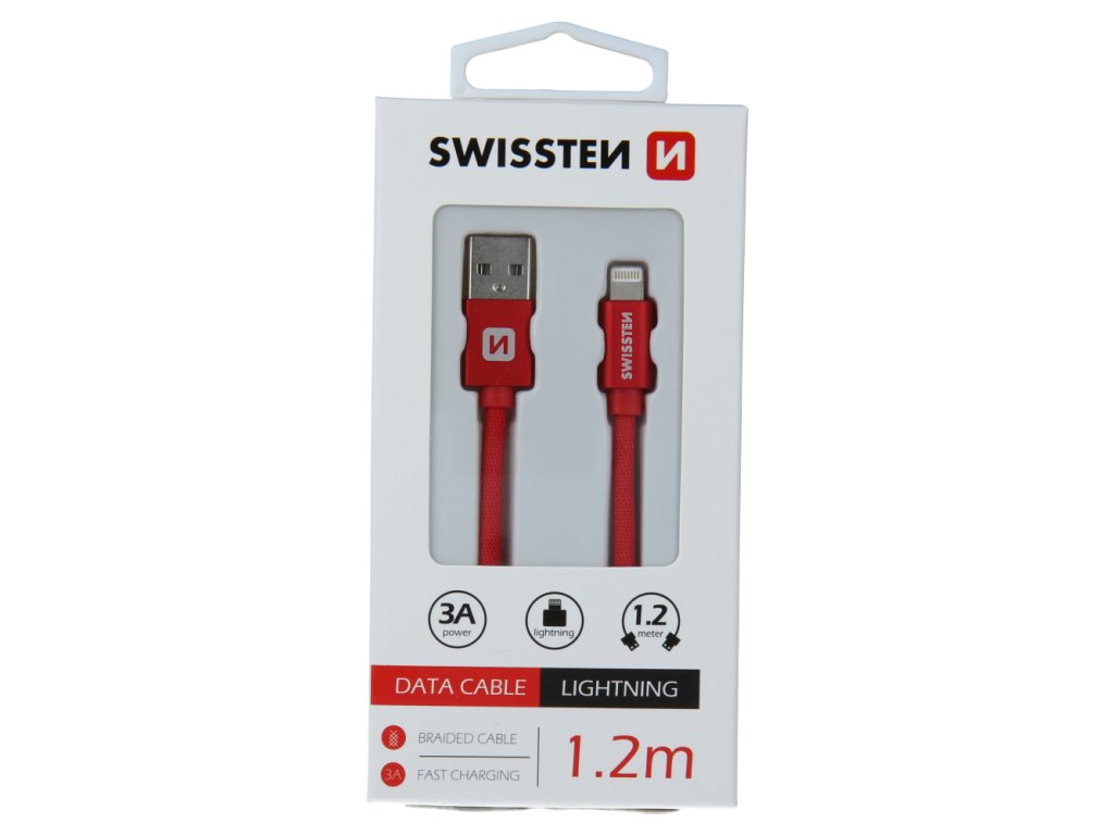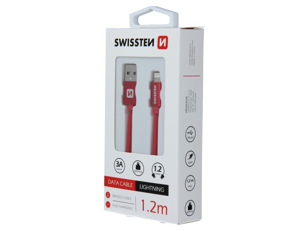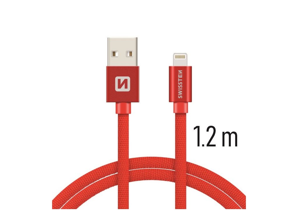 Datový kabel - Swissten - Textile - USB-A na Lightning - 0,2M - Červený