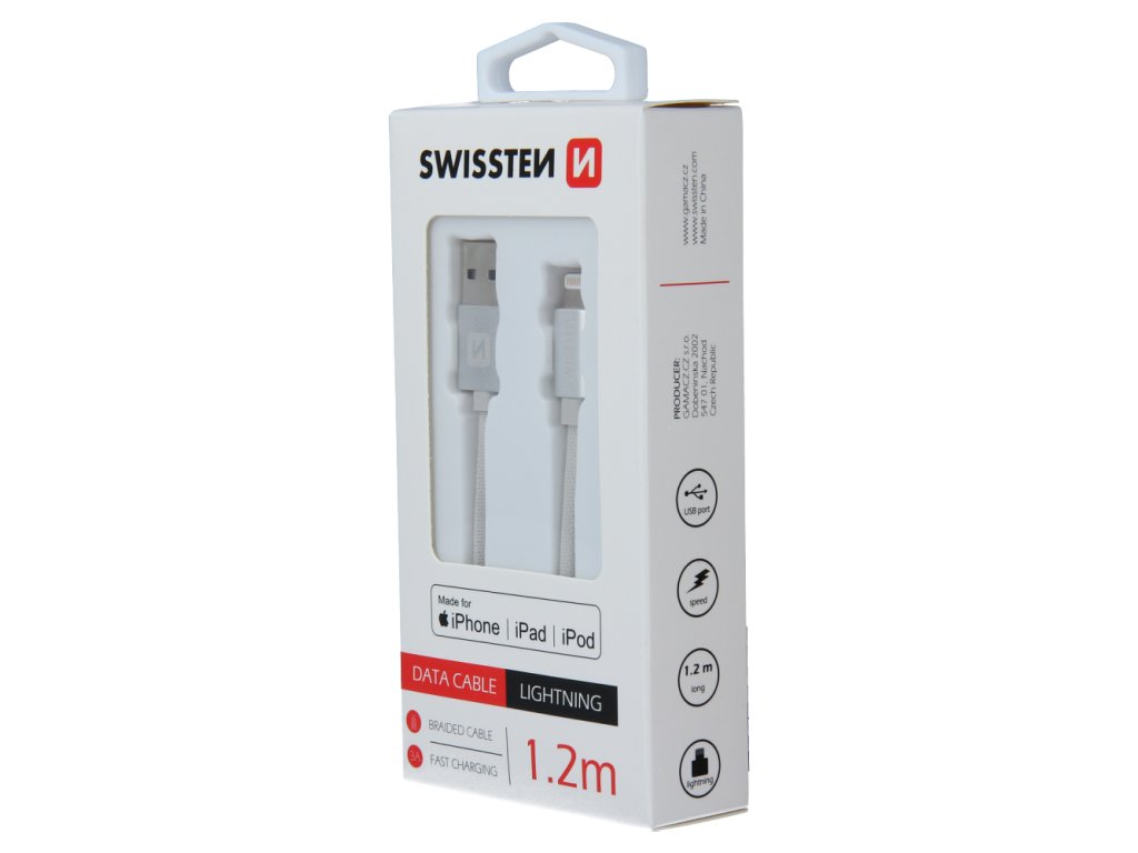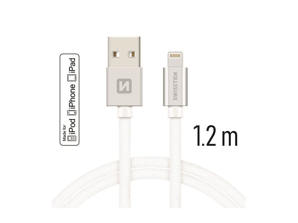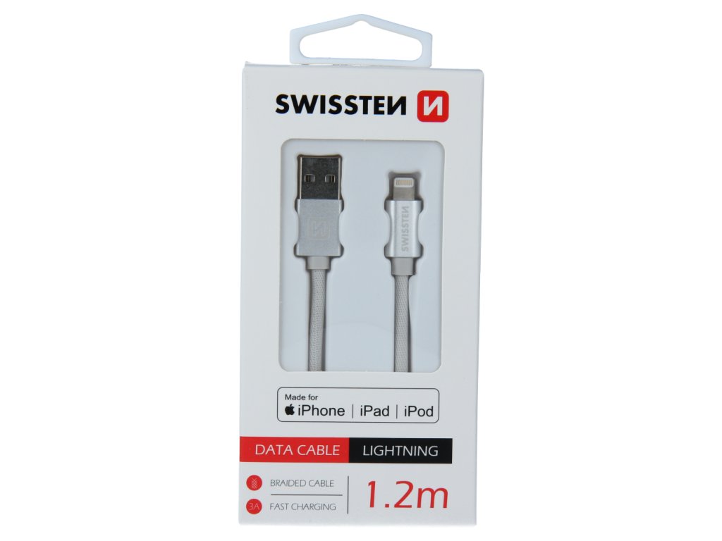 Datový kabel - Swissten - Textile - USB-A na Lightning - 1,2M - MFi - Stříbrný