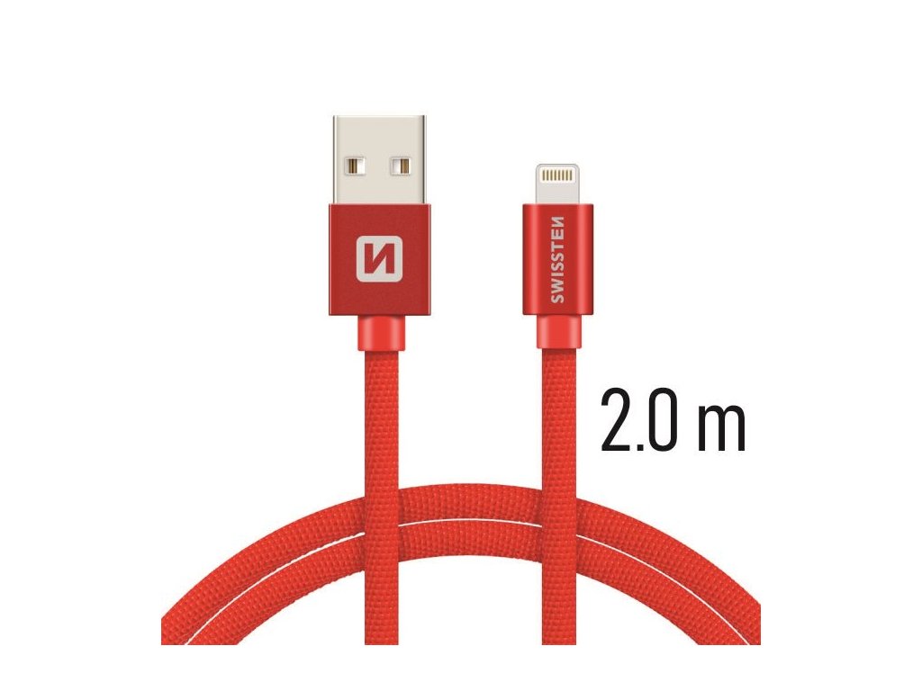 Datový kabel - Swissten - Textile - USB-A na Lightning - 2M - Červený