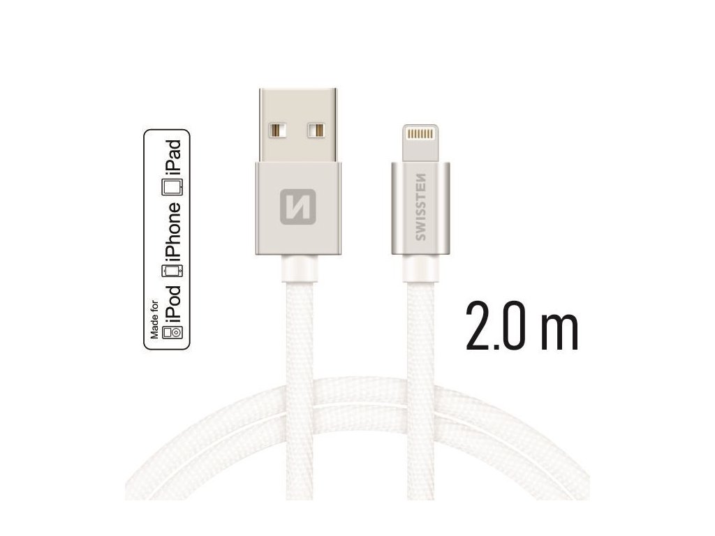 Datový kabel - Swissten - Textile - USB-A na Lightning - 2M - MFi - Stříbrný