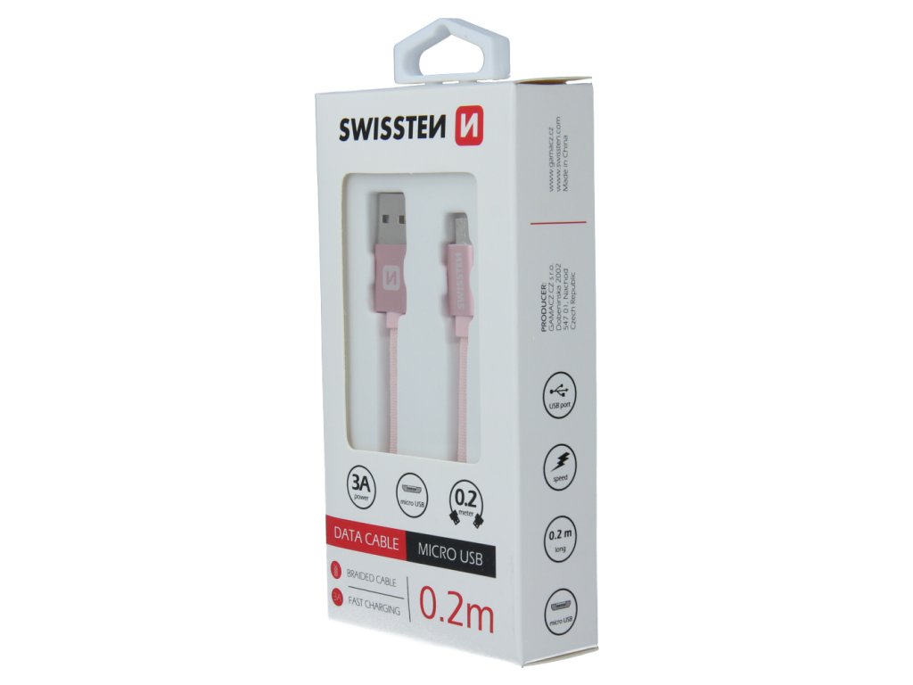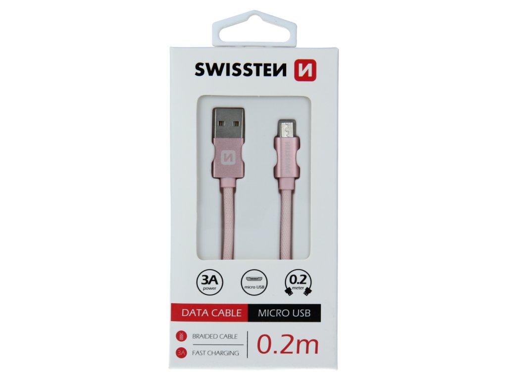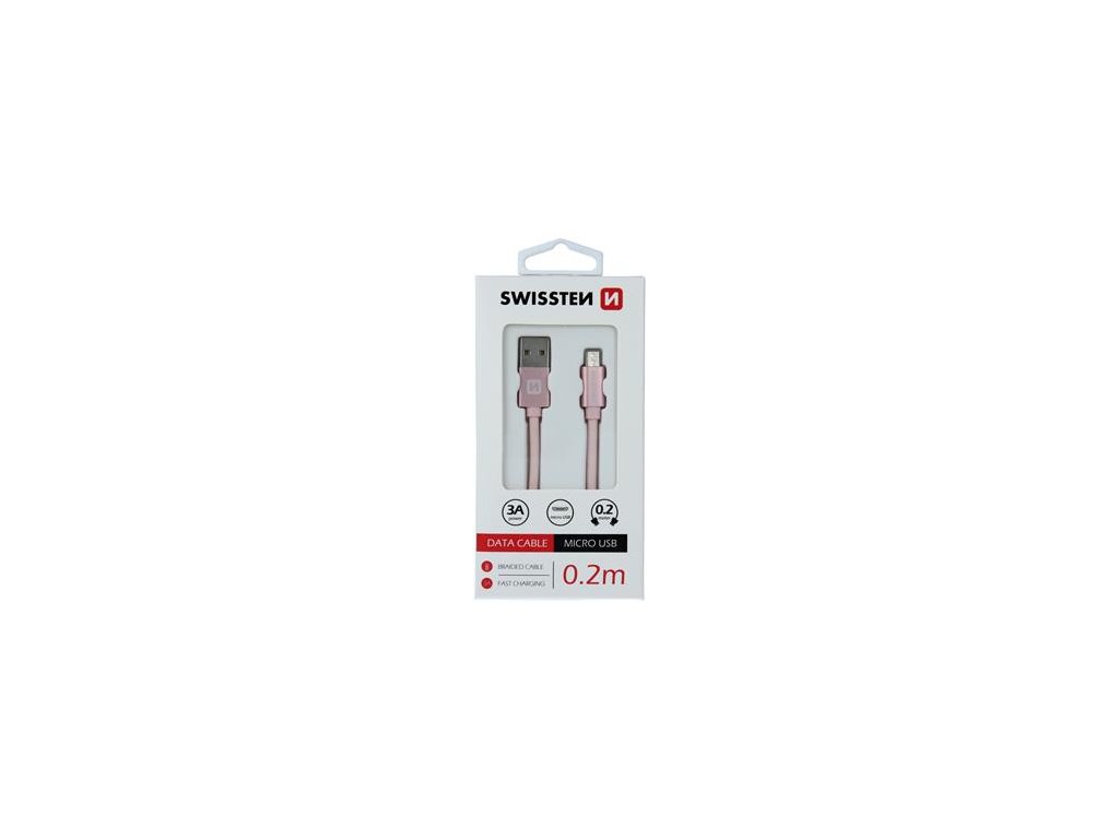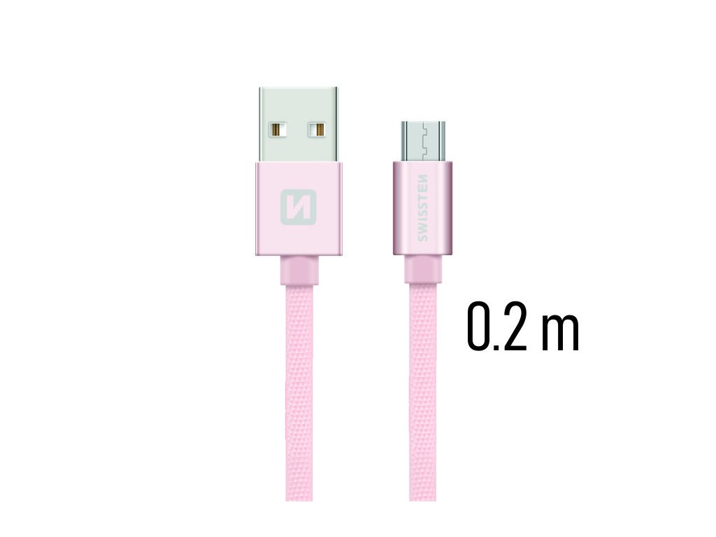 Datový kabel - Swissten - Textile - USB-A na microUSB - 0,2M - Růžový