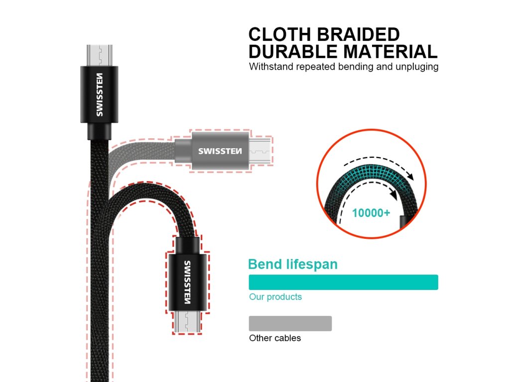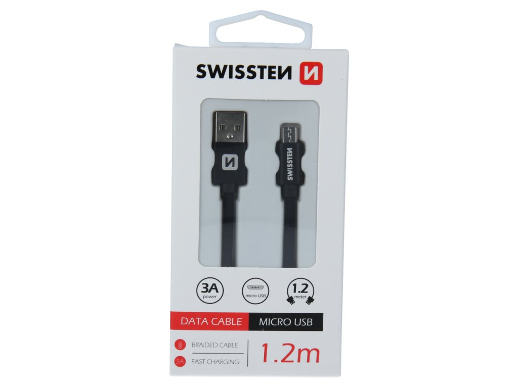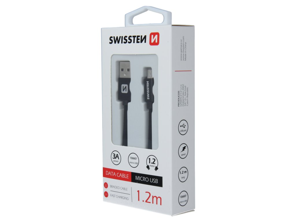 Datový kabel - Swissten - Textile - USB-A na microUSB - 1,2M - Černý