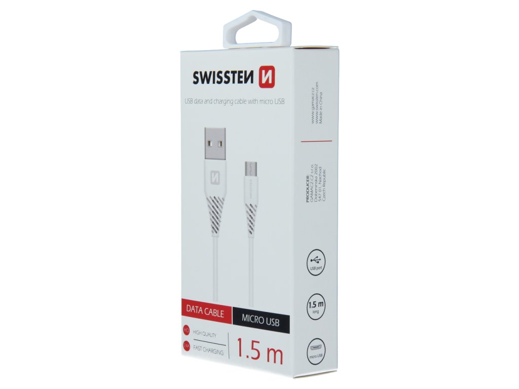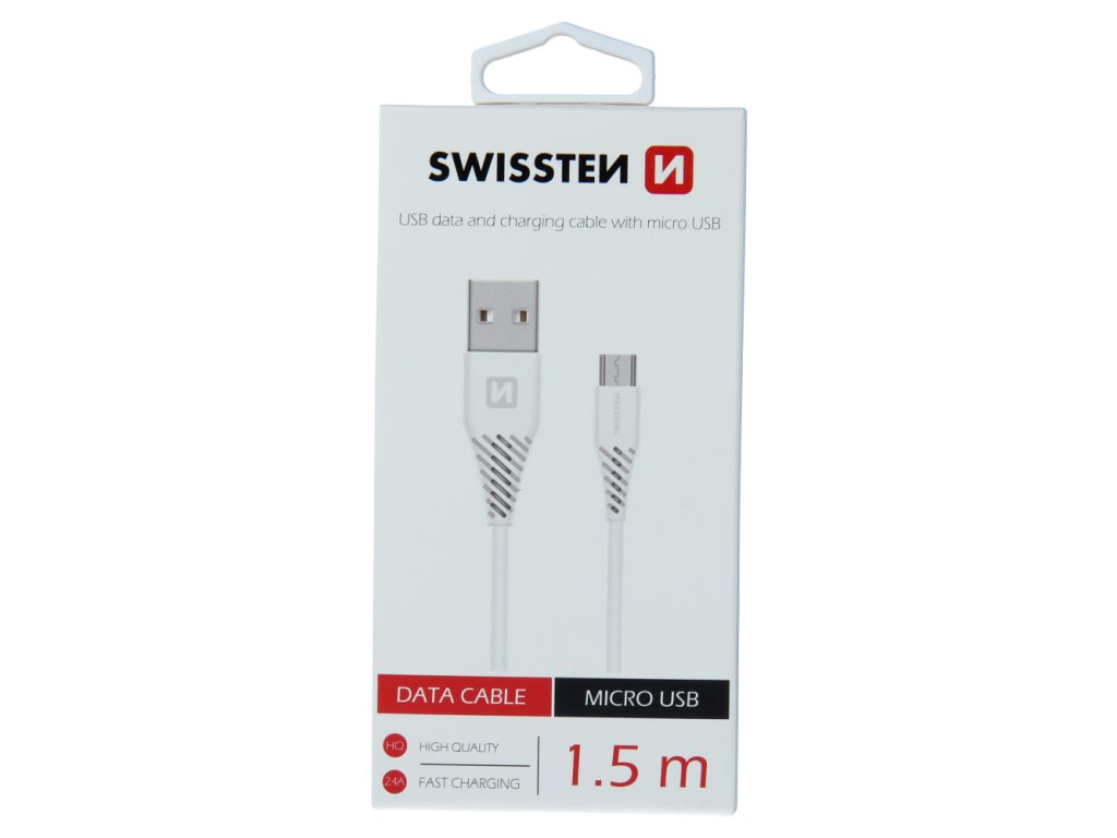 Datový kabel Swissten USB / micro USB o délce 1,5 m. Baleno v blistru Swissten.