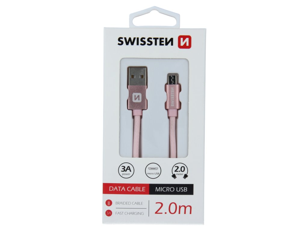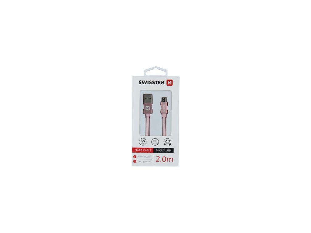 Datový kabel - Swissten - Textile - USB-A na microUSB - 2M - Růžový