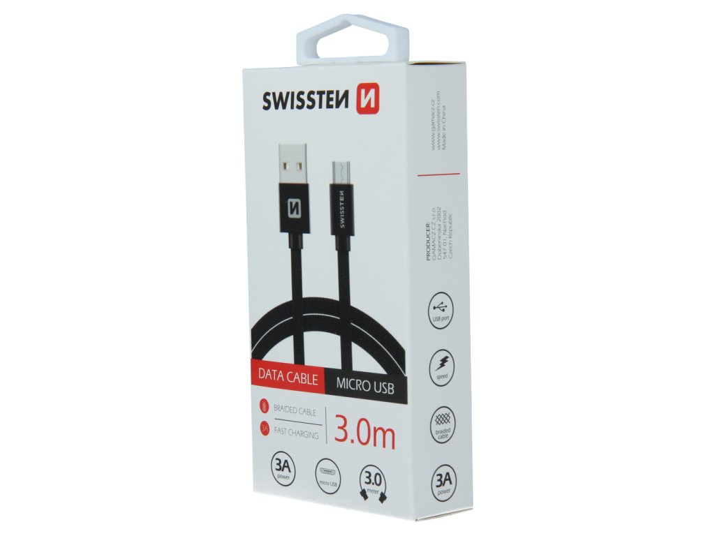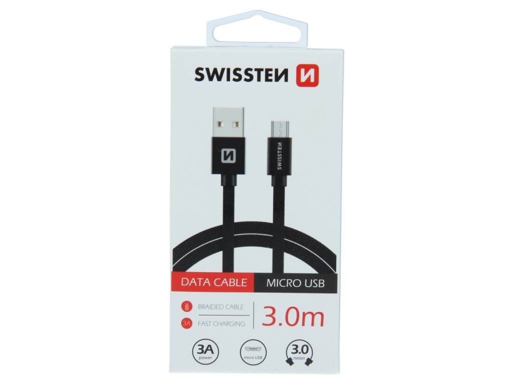 Datový kabel - Swissten - Textile - USB-A na microUSB - 3M - Černý