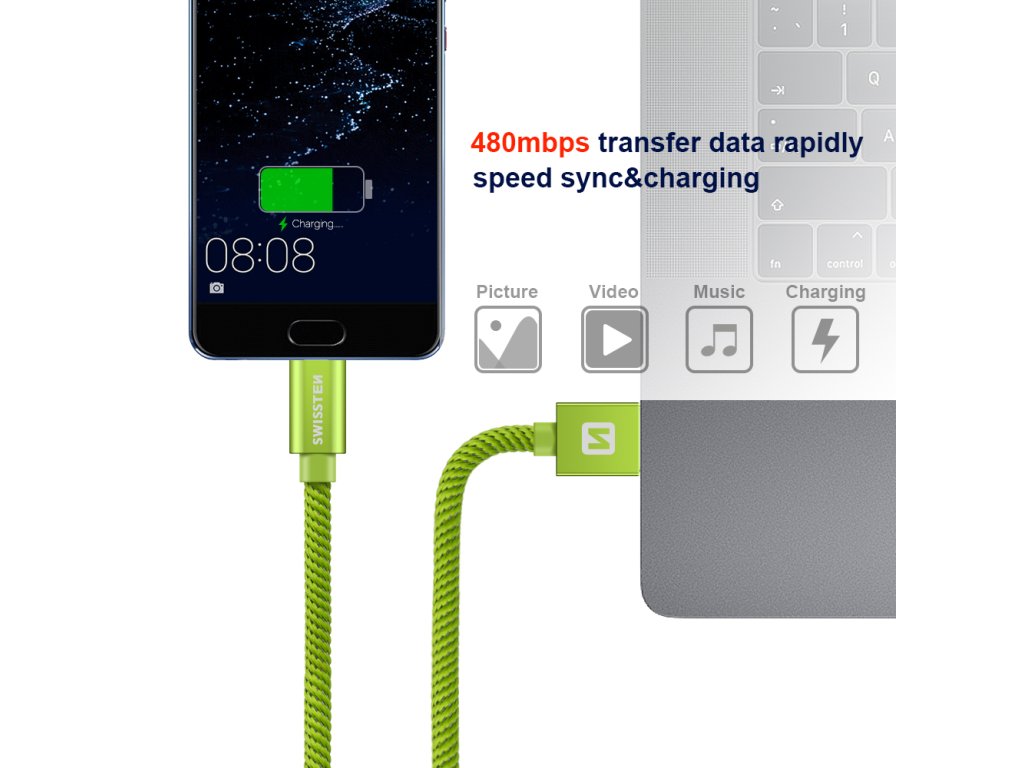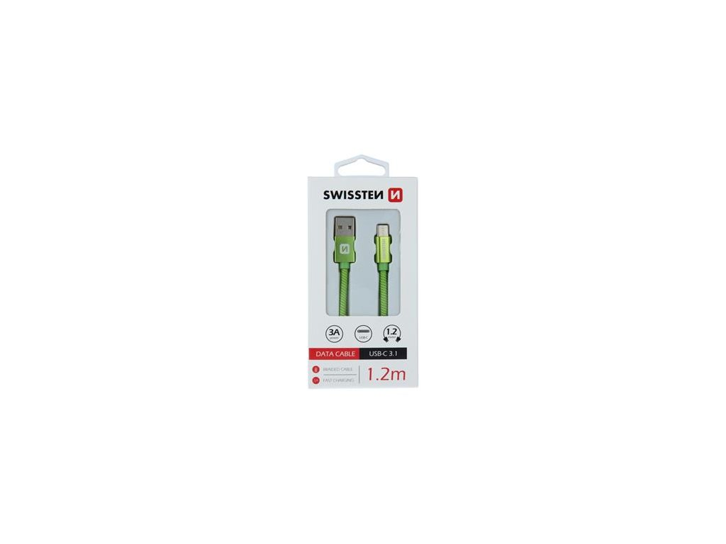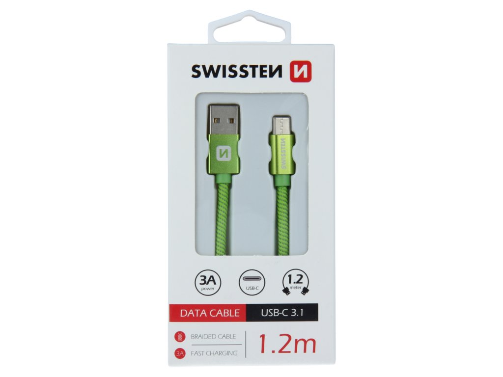 Datový kabel - Swissten - Textile - USB-A na USB-C - 1,2M - Zelený