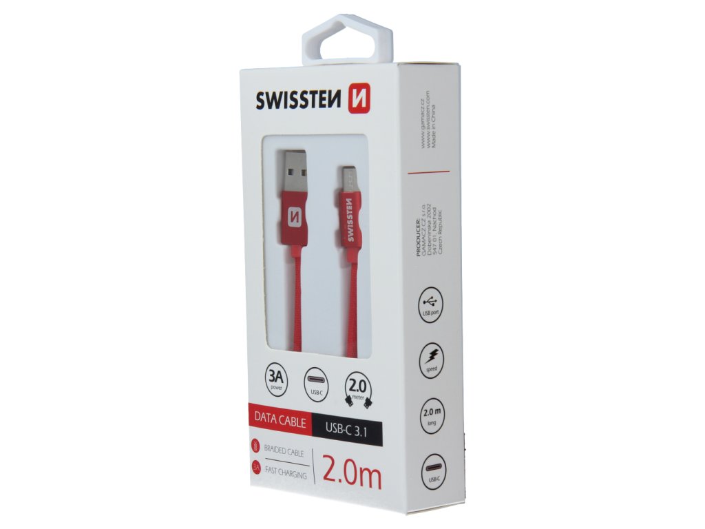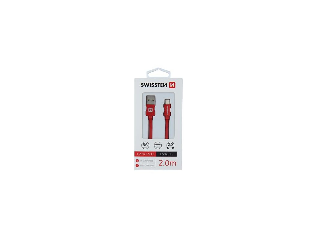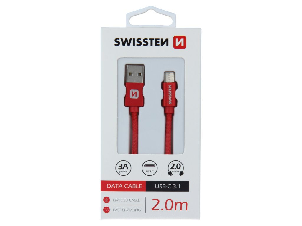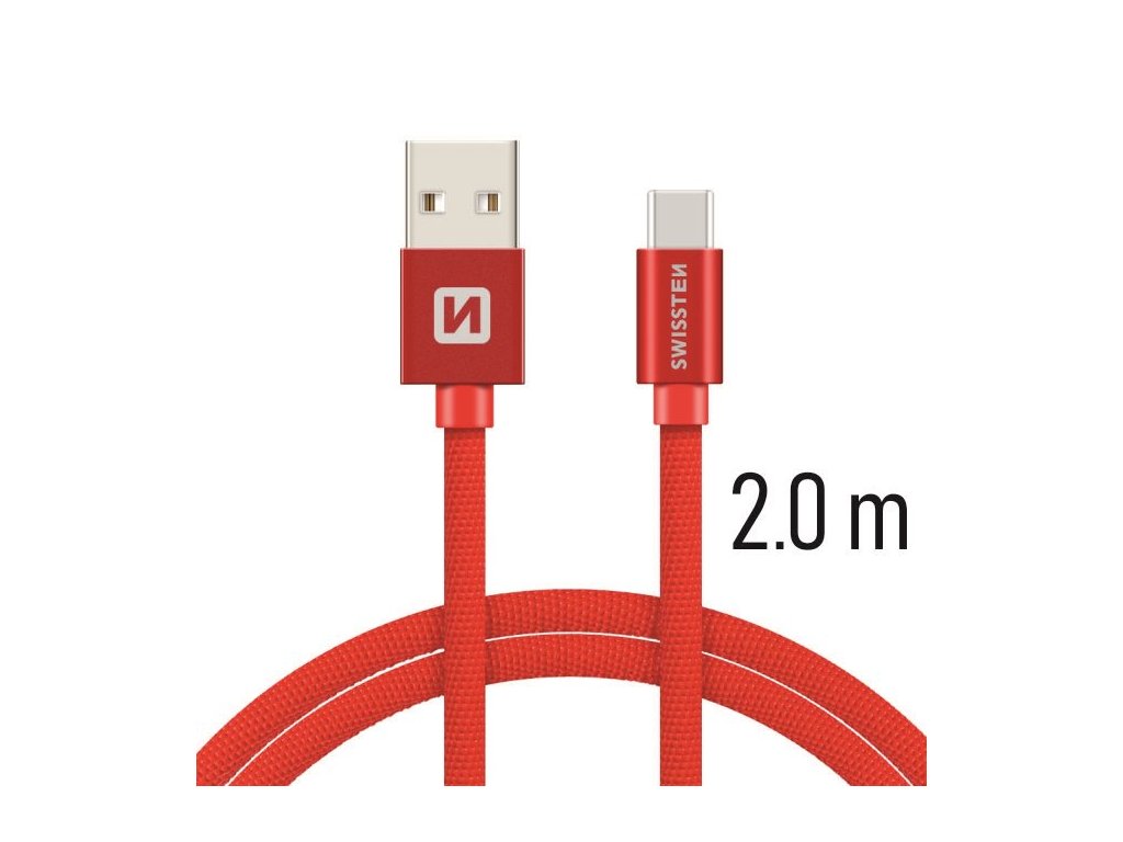 Datový kabel - Swissten - Textile - USB-A na USB-C - 2M - Červený