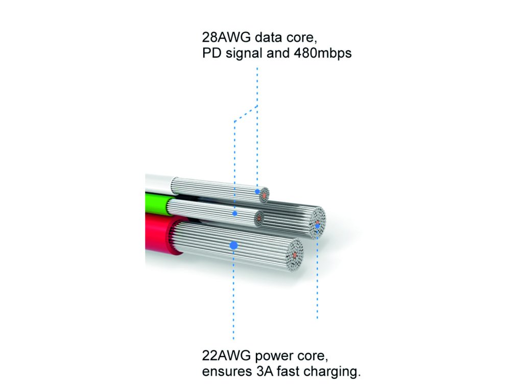Datový kabel Swissten USB/USB-C s kvalitním textilním opletením a kovovými kryty konektorů. Díky délce 2,0m je vhodný do nákladních aut, do aut pro rodiny nebo pro lidi, kteří často dobíjejí a mají daleko zásuvku a v době dobíjení potřebují volat. Kabel je zesílený a přenese tak větší proud (až 3A) a zvládne i rychlý přenos dat 480 Mb/s. Životnost kabelu v ohybu je více než 10000 ohybů. Kovový kryt konektoru je odolnější proti mechanickému poškození než běžné plastové kryty konektorů. Technické parametry: Tloušťka kabelu - dva pocínované měděné vodiče, kde každý 22 AWG 70/0,01 (to znamená, že každý vodič má 70 pramenů tenkých 0,01 mm, (např originální kabel Apple MD818 má 37 pramenů o tloušce 0,08 mm) + vnější plášť TPE (měkký plast) - dva pocínované měděné datové prameny, kde každý 28 AWG-12 + vnější plášť TPE (měkký plast) Kryt konektoru - materiál: eloxovaný hliník Eloxování neboli anodizace je druh chemicko-tepelné povrchové úpravy výrobků z hliníku (zkratka ELektrolytická OXidace hliníku). Spočívá ve vytvoření ochranné vrstvy oxidu hliníku na upravovaném povrchu. Tato vrstva již dále neoxiduje, a tím před oxidací chrání i samotný hliník. Používá se například v letecké (i automobilové) výrobě ale nejčastěji v případech, kde je hliník použit v exteriéru, např. u hliníkových oken atd. Výhodou je, že po vytvoření tenoučké vrstvy je materiál chráněn proti povětrnostním vlivům.Doplňkové parametry