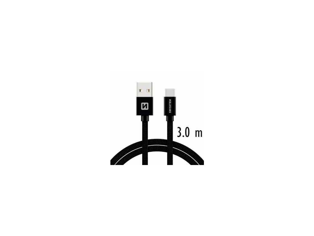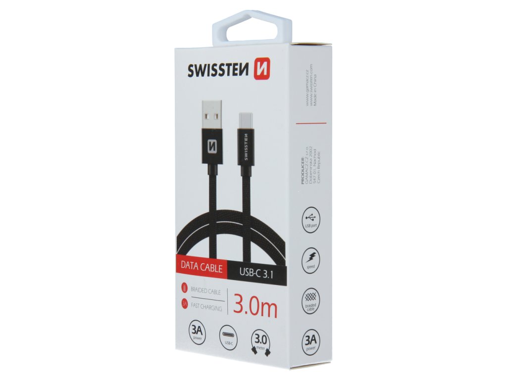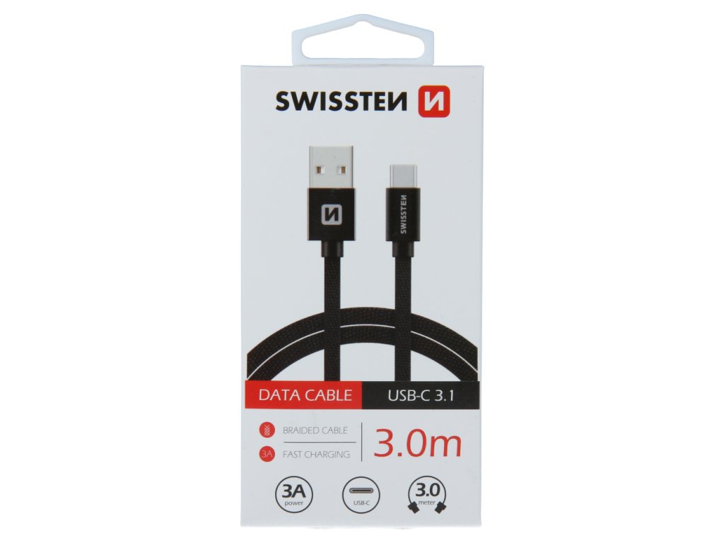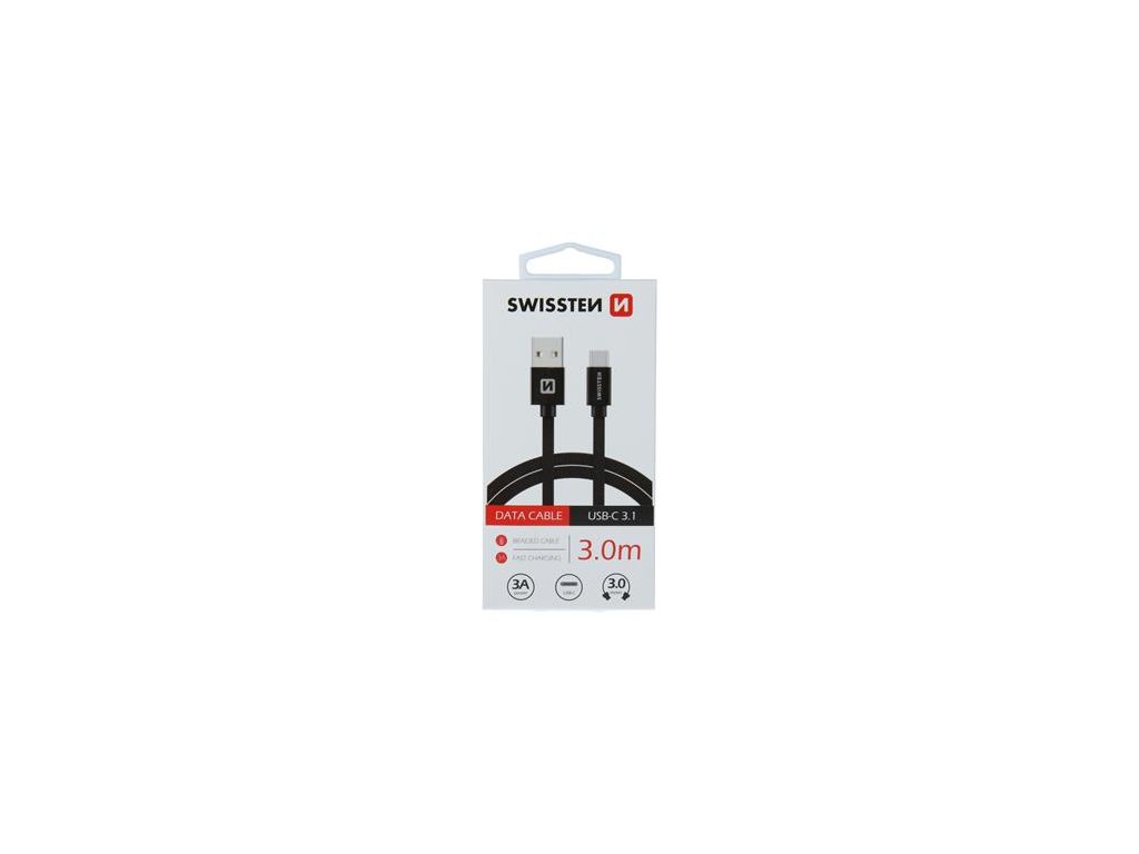 Datový kabel - Swissten - Textile - USB-A na USB-C - 3M - Černý