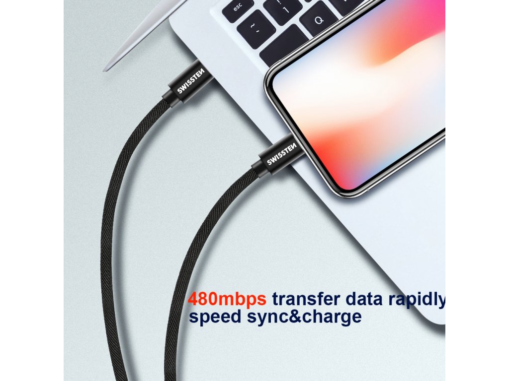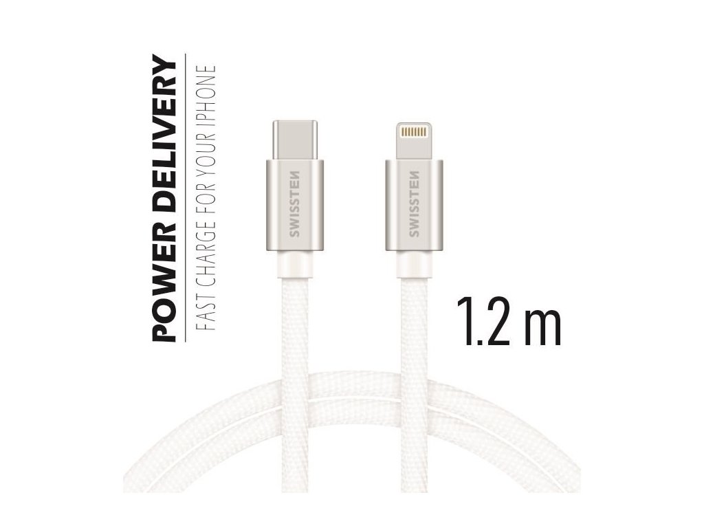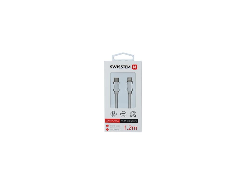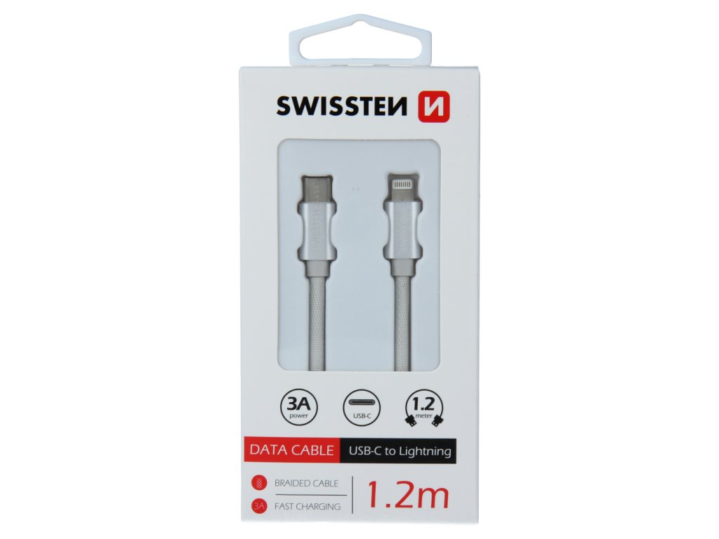 Datový kabel - Swissten - Textile - USB-C na Lightning - 1,2M - Stříbrný