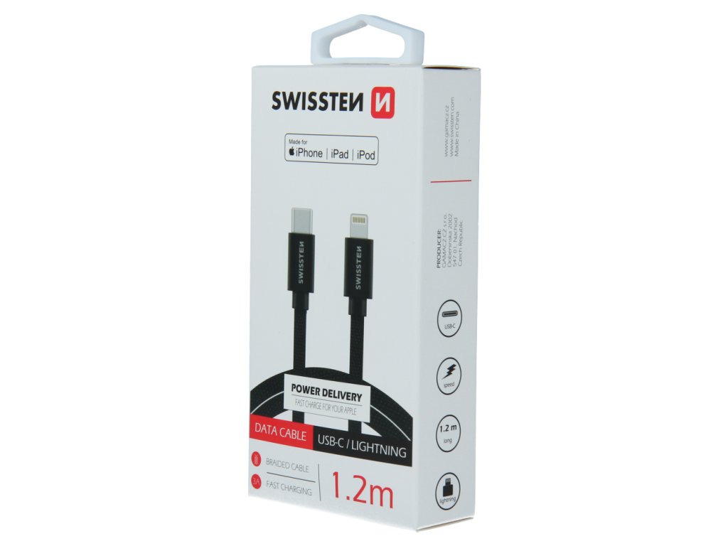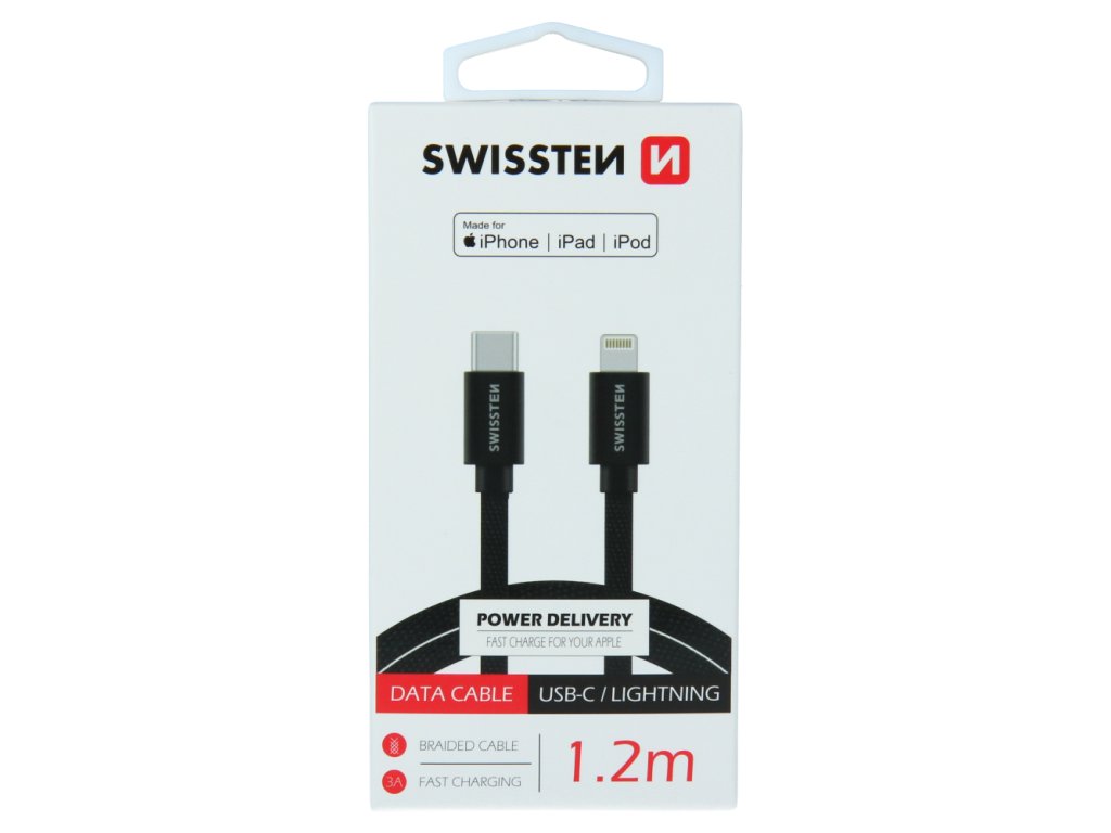 Datový kabel - Swissten - Textile - USB-C na Lightning - 2M - MFI - Černý