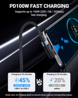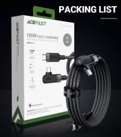 Úhlový USB Type C - USB Type C kabel pro nabíjení a přenos dat od Acefast. Jedna ze zástrček je nastavena pod úhlem 90 stupňů, tato konstrukce usnadňuje používání telefonu, když je připojen k nabíječce. Perfektní řešení pro hráče. Je určen pro zařízení s konektorem USB typu C. Je dlouhý 200 cm a dokáže pracovat s proudem 100W a 5A. Umožňuje rychlé nabíjení v technologii Power Delivery. Lze jej použít k napájení notebooků s konektorem USB typu C, které potřebují až 100W napájení (zkontrolujte specifikaci vašeho notebooku). Kabel je po celé délce opleten nylonem. Zátky mají hliníkové pouzdro. Konce kabelů jsou chráněny proti poškození v místech nejčastějšího ohybu.