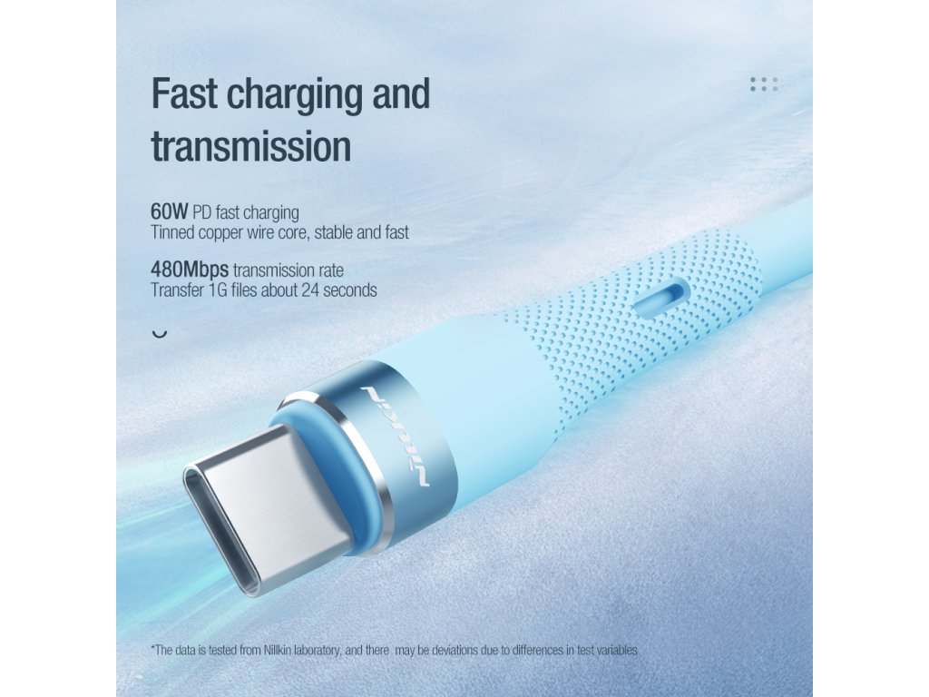 Nillkin Flowspeed Liquid Silicone Datový Kabel s koncovkou USB-C/USB-C a délkou 1,2 m. Hledáte kabel, který vám umožní rychle nabíjet a přenášet data mezi zařízeními? Pak je pro vás ideální Nillkin Flowspeed. Kabel s podporou rychlého nabíjení a přenosu, který vás nezklame ani v náročných podmínkách. Je vyroben z Liquid silikonu, jemného a šetrného materiálu, který je pružný a odolný proti teplu, chladu, nečistotám, stárnutí (popraskání) i žloutnutí. Navíc se snadno skladuje díky silikonovému řemínku se sponou, který zabraňuje zamotání kabelu. Nillkin Flowspeed je kabel, který splní vaše očekávání. Vlastnosti: - USB-C na USB-C - Rychlé nabíjení (až 60 W ; 2,4 A Max) a přenos (až 480 Mbps) - Délka 1,2 m - Tělo z Liquid silikonu - Příjemný na dotek - Pružnost - Odolnost vůči teplu, chladu, nečistotám, stárnutím (popraskáním) a žloutnutím. - Snadné skladování - Silikonový řemínek se sponou
