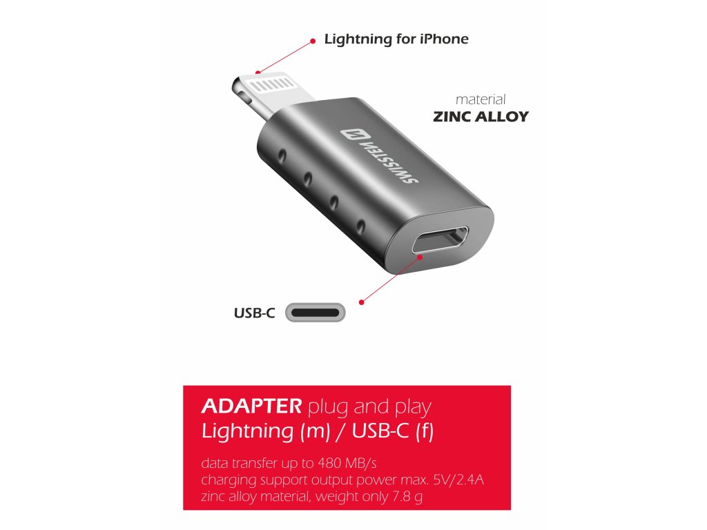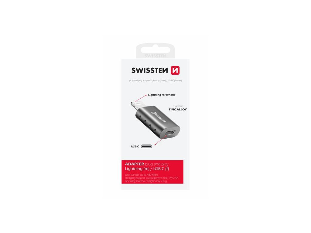SWISSTEN ADAPTER LIGHTNING(M)/USB-C(F)pro připojení zařízení s USB-C do iPhonu. Baleno v blistru SWISSTEN