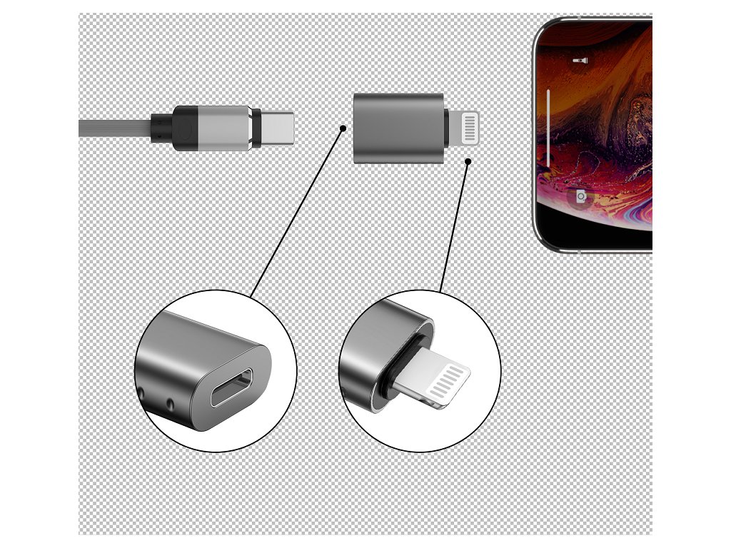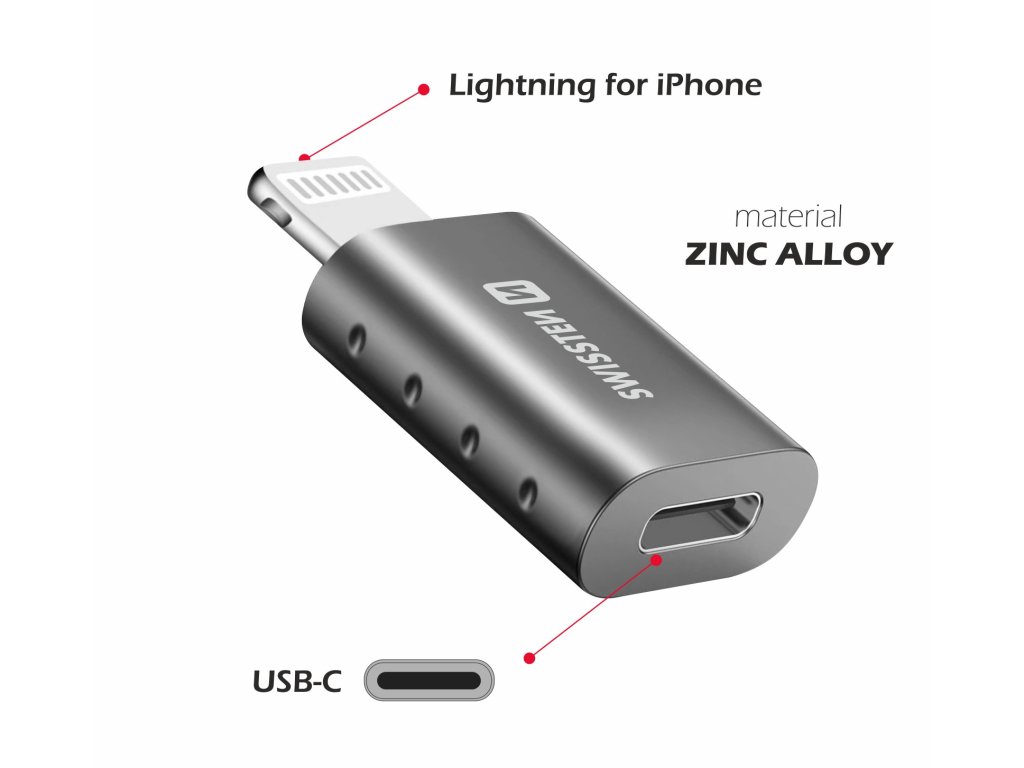 Redukce - Swissten - USB-C na Lightning - Šedý